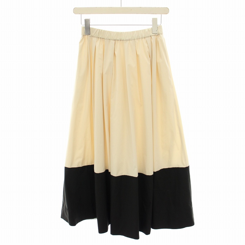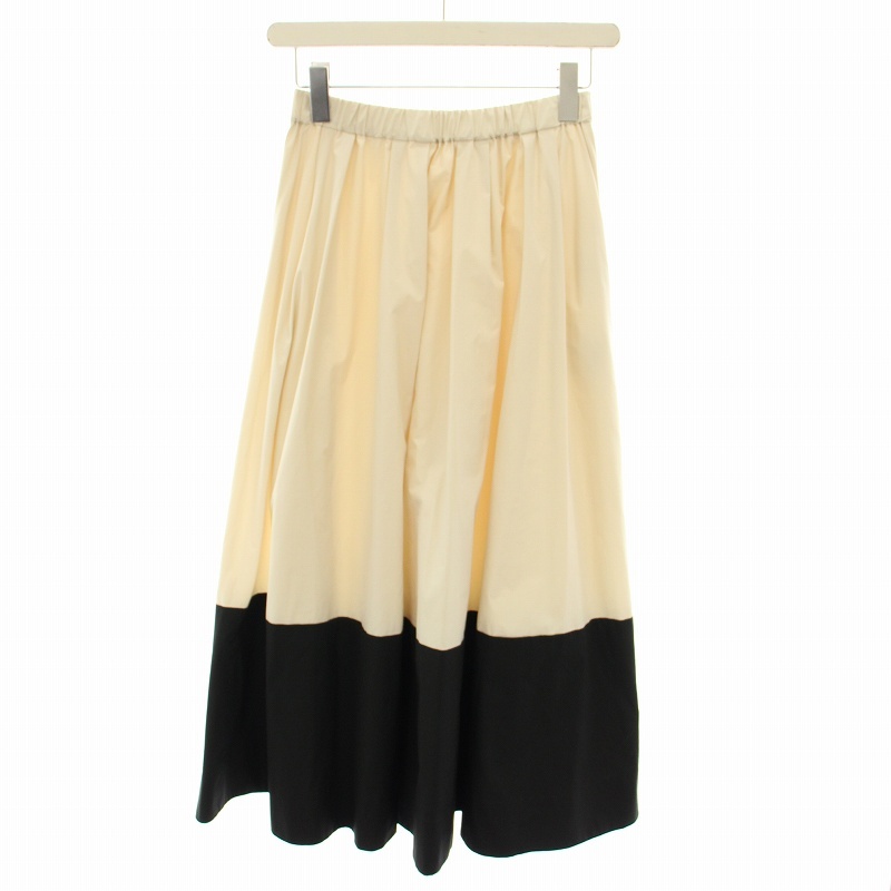 イエナ IENA 23SS バイカラースカート ロング フレア イージー 36 黒 ブラック 白 ホワイト 23060900936020 /YT レディース