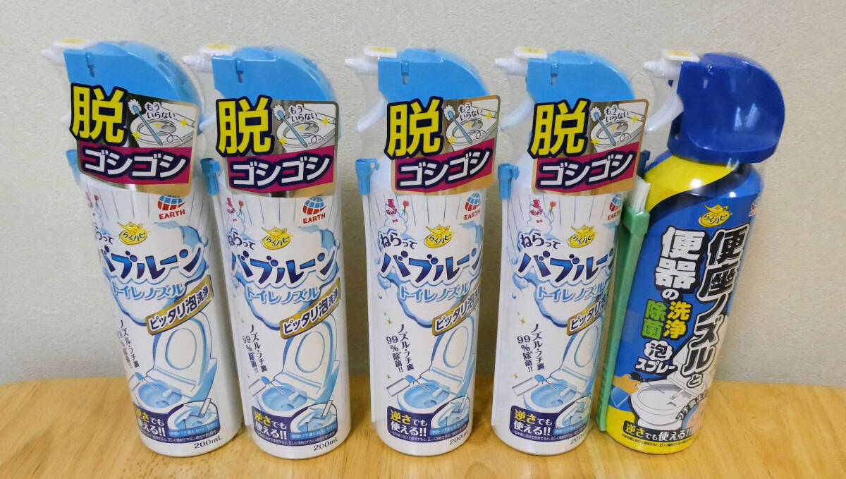【新品】【未開封】アース製薬 らくハピ ねらってバブルーン トイレ洗浄剤 泡洗浄スプレー・4本セット+1本