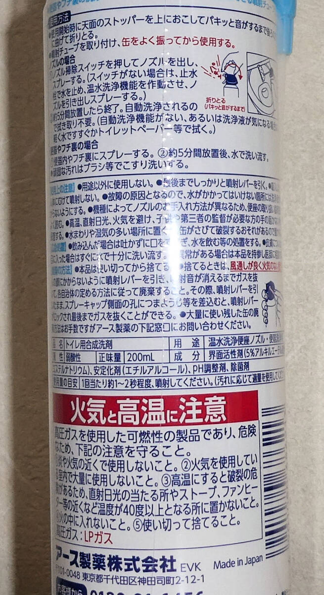 ○温水洗浄便座ノズルの汚れを浮かせて簡単にキレイにするスプレー。