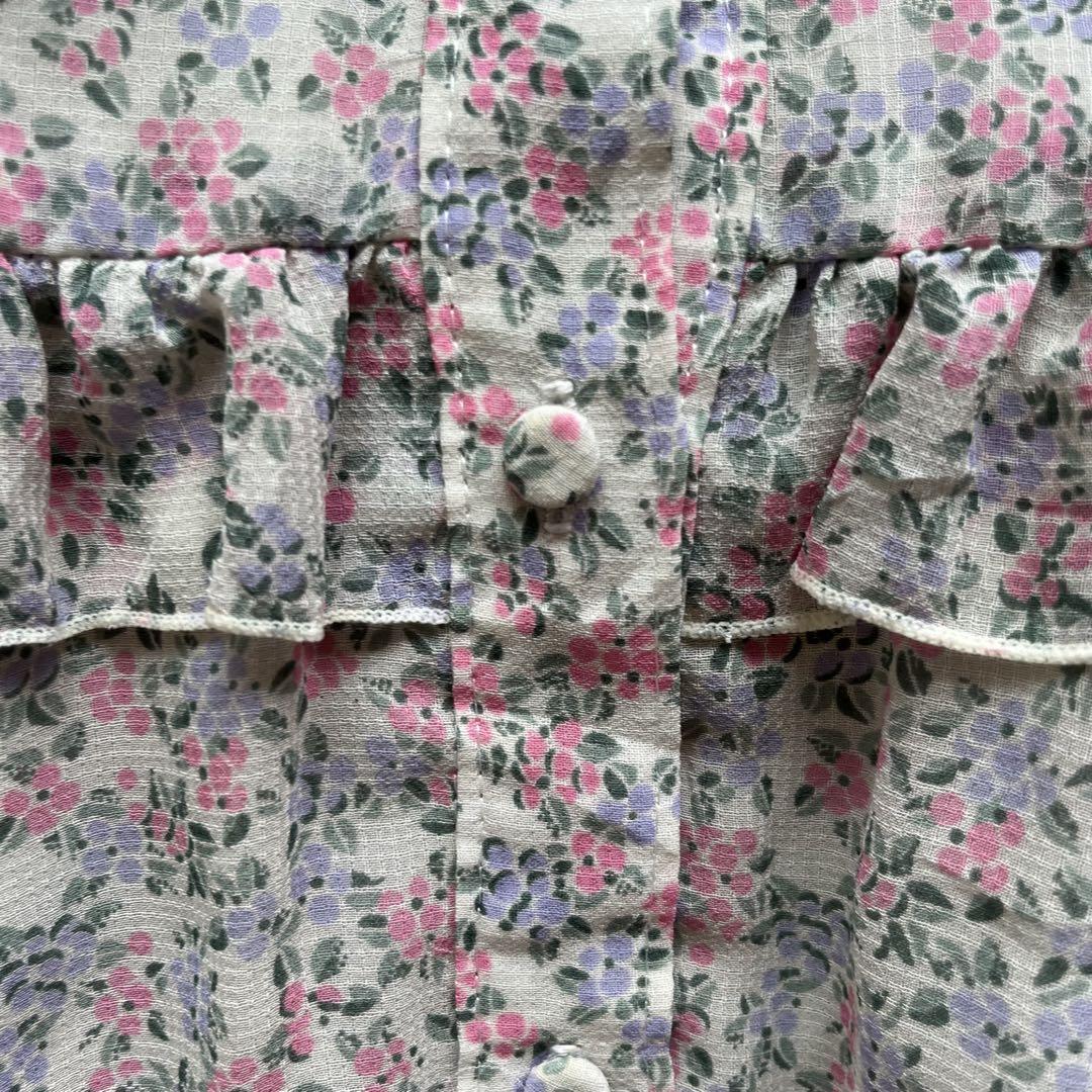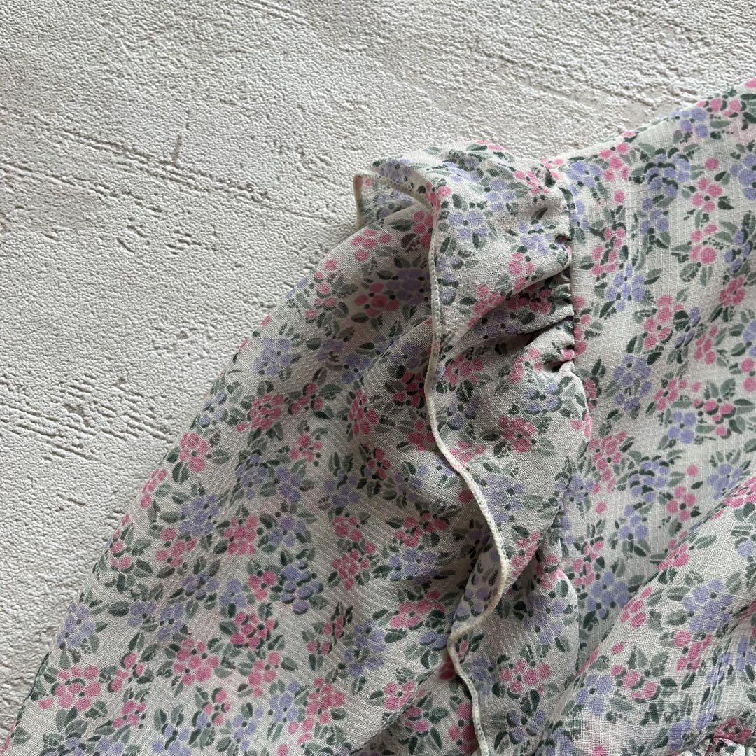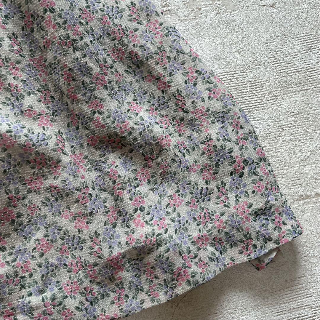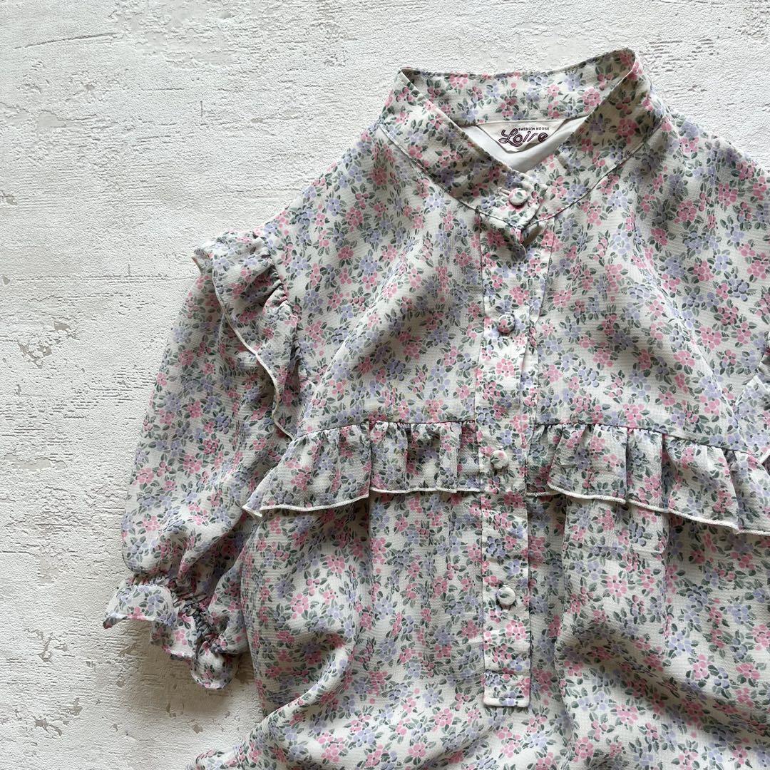 昭和レトロ花柄半袖ロングワンピーススタンドカラーフリル付きホワイト9号n1