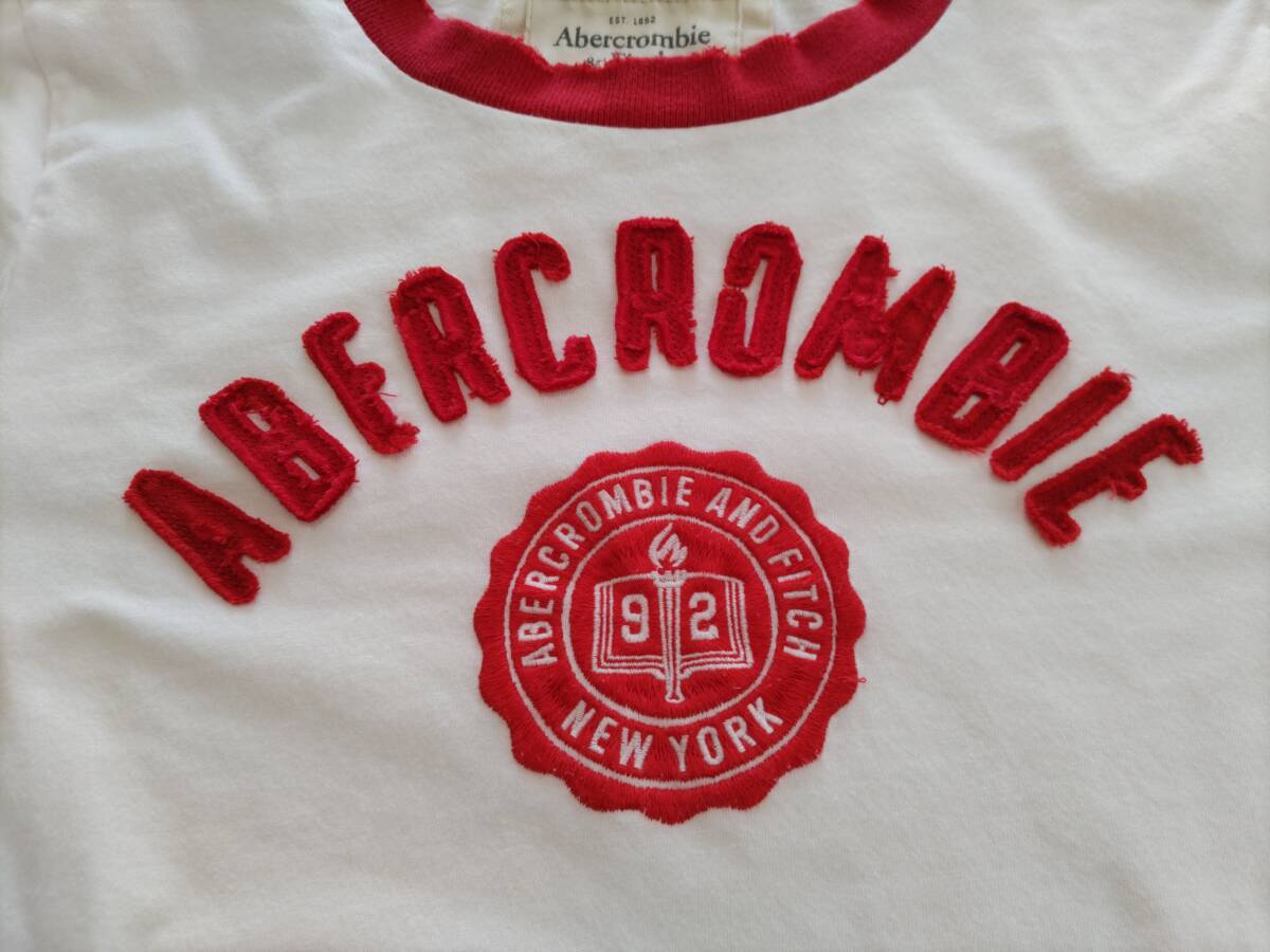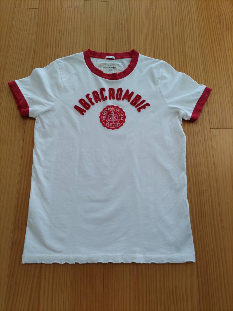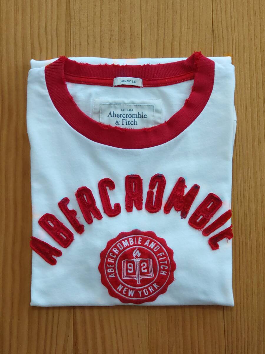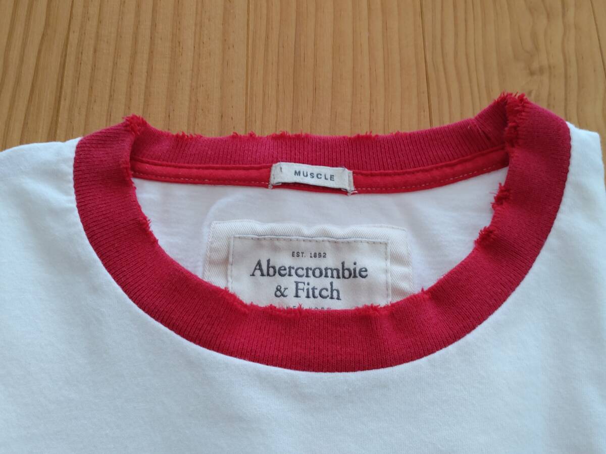 【着用1回】Abercrombie&Fitch/アバクロンビー&フィッチ MUSCLE ヴィンテージ加工 半袖 Tシャツ XL 綿100 白/赤