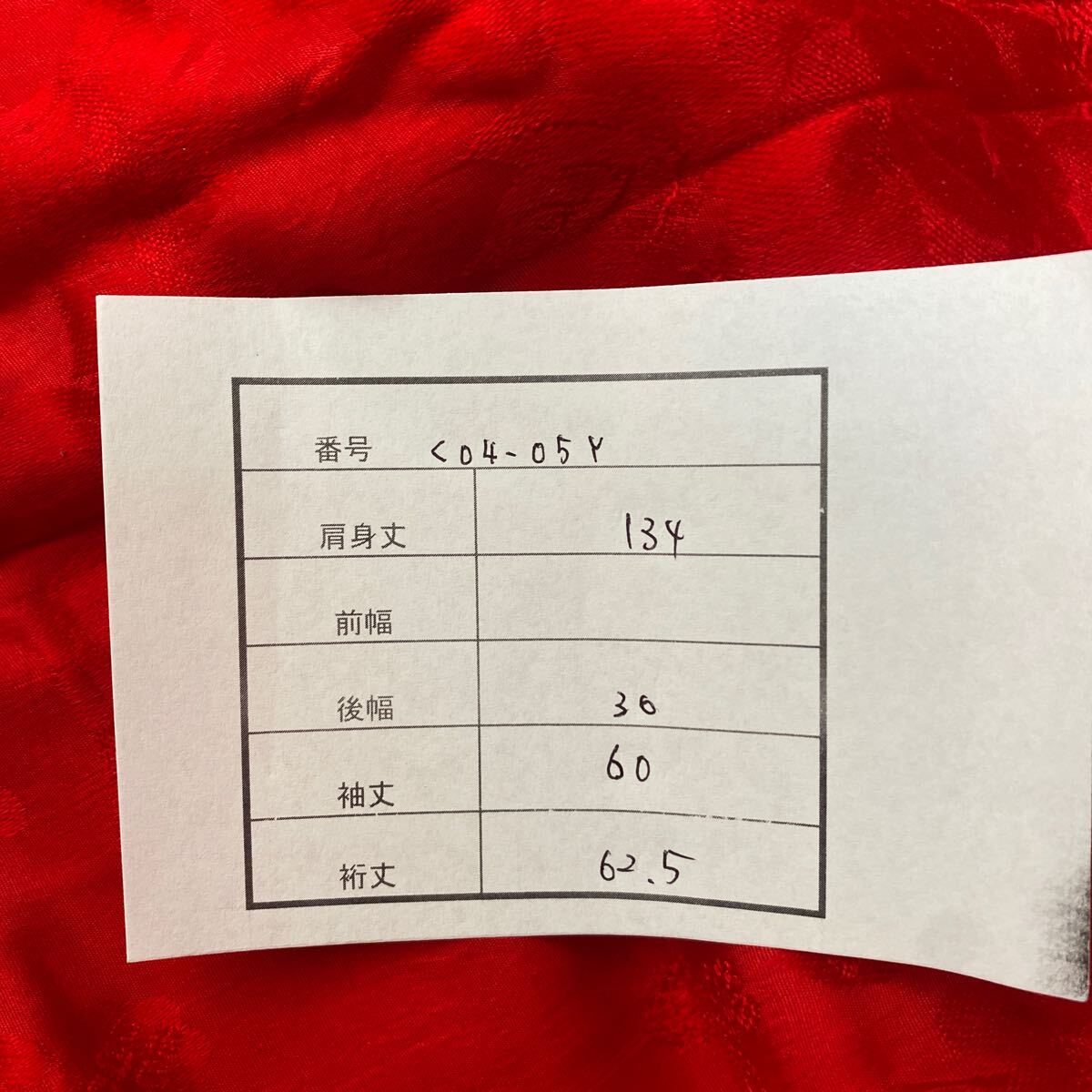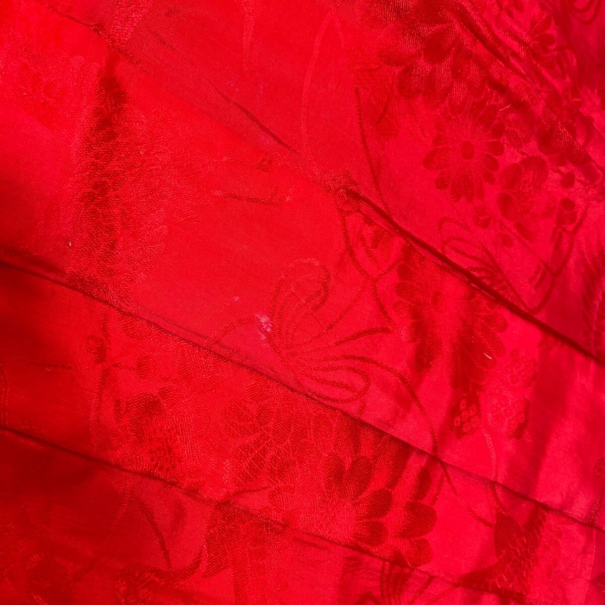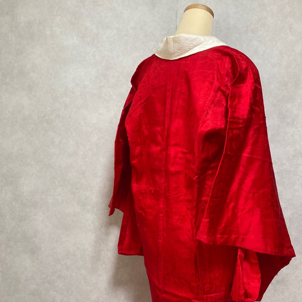 長襦袢 アンティーク 着物 地紋 扇子 鶴 赤色 昭和レトロ 大正ロマン モダン リメイク 絹 正絹100% く04-05y