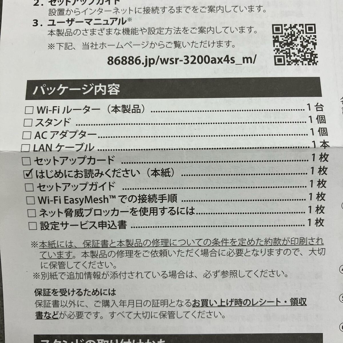 【A】BUFFALO バッファロー Wi-Fiルーター(無線LAN親機) WSR-3200AX4S-WH ※動作未確認※ 中古/現状品 箱付き 【2859】
