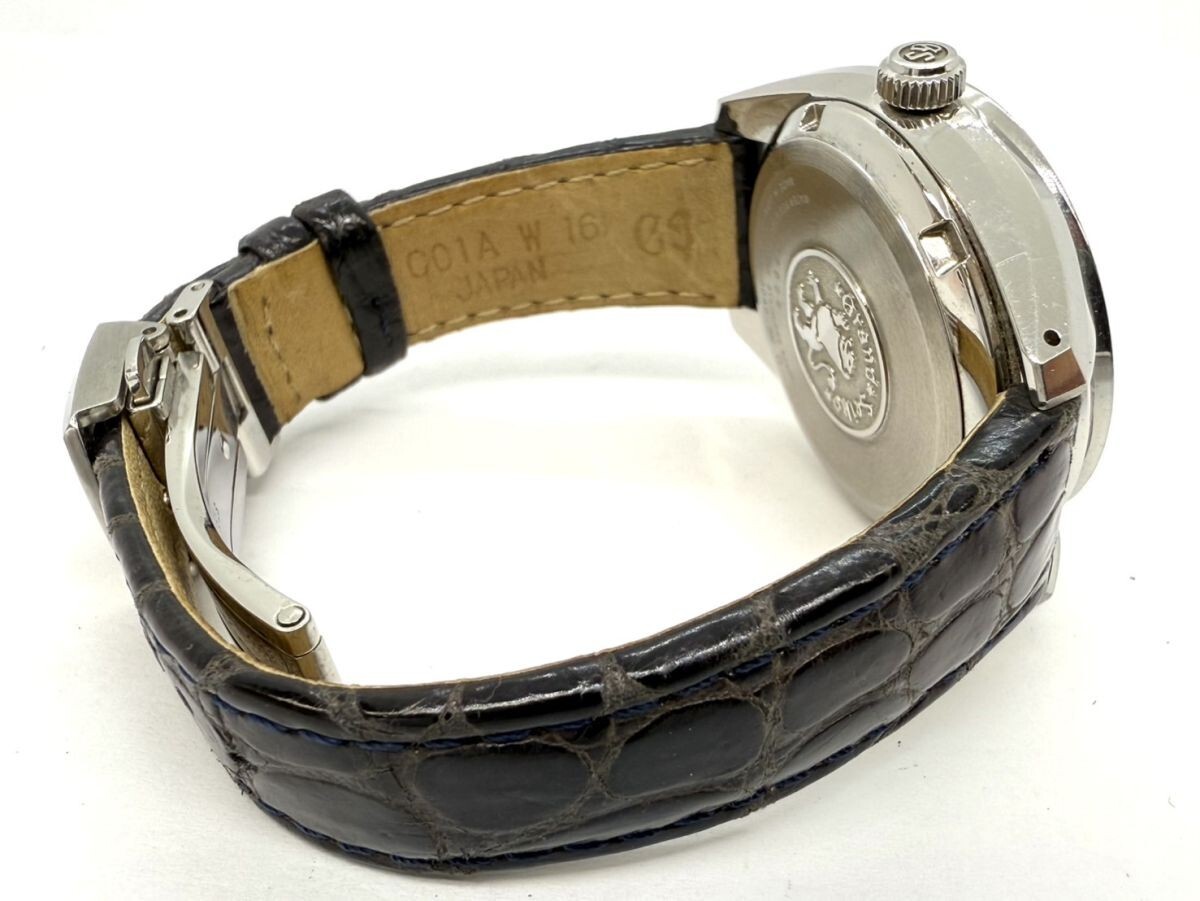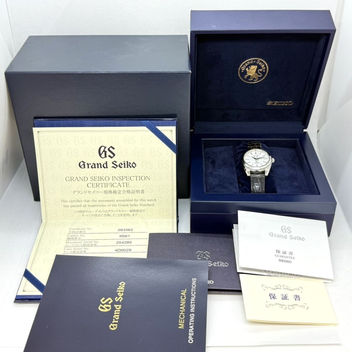 取り扱っている商品は未使用・未開封も含め、全て一度は人の手に渡った一点ものの中古・ジャンク扱いでの商品です。 当方素人ですので肉眼で確認できる簡易的な検品、採寸、および簡易梱包となります。 ※稼働の記載につきましては秒針等の確認のみとなり、全体の動作を保証するものではございません。 また、出品時の中古品の動作状況となりますので、予めご了承の上でご入札ください。 不動の表記につきましてはクォーツ式のムーブメントの場合、動作未確認の状態となります。 電池交換後、不具合があった場合でも返金、返品の対象とはなりませんので、予めご了承くださいますようお願い致します。 細かな日差、オーバーホール状況、社外パーツの使用に関しては保証しかねますので、ご理解いただけた上でのご入札をお願い致します。 上記を踏まえた上で中古品、ジャンク商品として出品させていただいておりますので、全てご理解いただけた上でのご入札をお願いいたします ------------------------------------------------------------------------- 【8/13~8/17の間夏季休業の為、8/18以降の発送になります】 【メーカー】 SEIKO セイコー 【モデル名】 GS グランドセイコー 【型番】 9S61-00A0 【シリアル】 4D0029 【サイズ】 直径約42mm 腕回り約-cm 【付属品】 画像参照 【稼働状態】 稼働 【その他状態】 リューズ動作 時間:OK 日付: 曜日: ------------------------------------------------------------------------- 画像にあるものが全てです。 他詳細は画像にてご判断ください。 ※目立つ傷や汚れを中心に写真を撮っておりますが、画像に写りきっていない傷等がある場合もございます。予めご了承ください。 ※商品を多数出品している関係で、稀に商品説明や画像に誤りがある場合がございます。予めご了承ください。 こちらのページをご覧いただく際は、商品説明文と掲載している画像の全てを確認いただいた上でご入札ください。 | |||||||