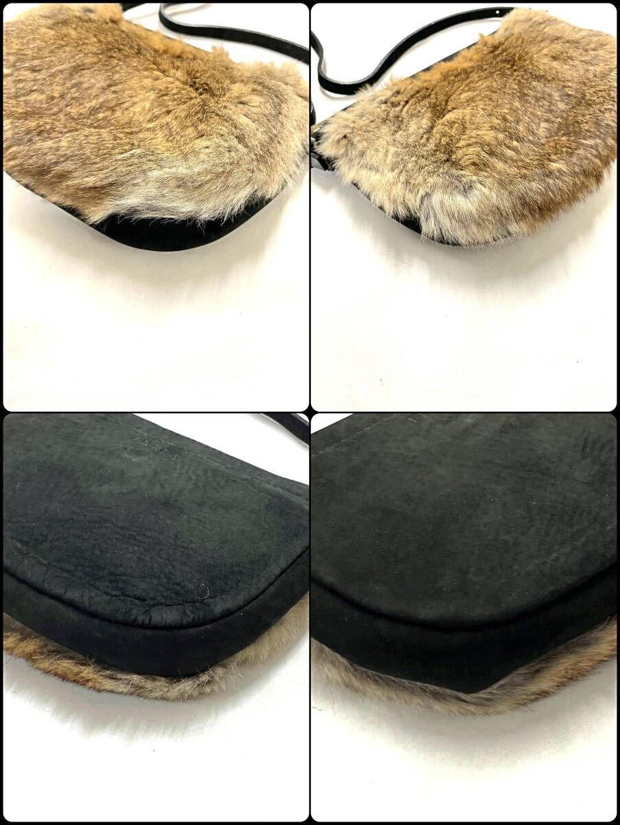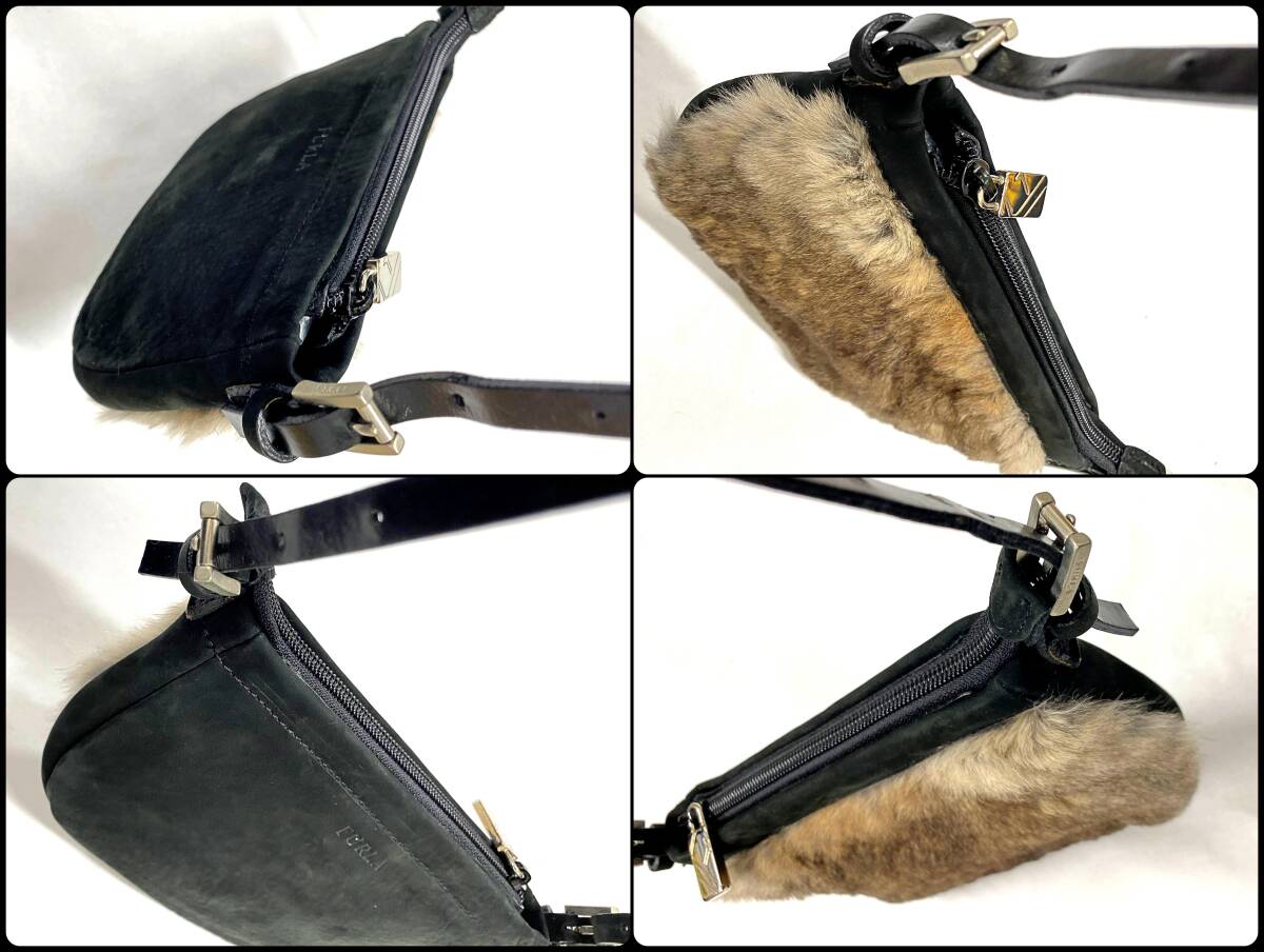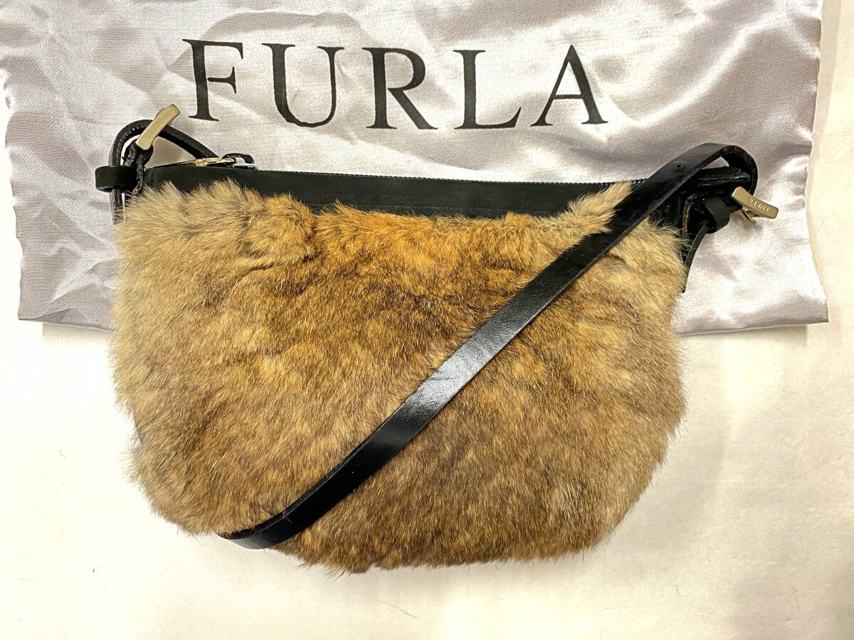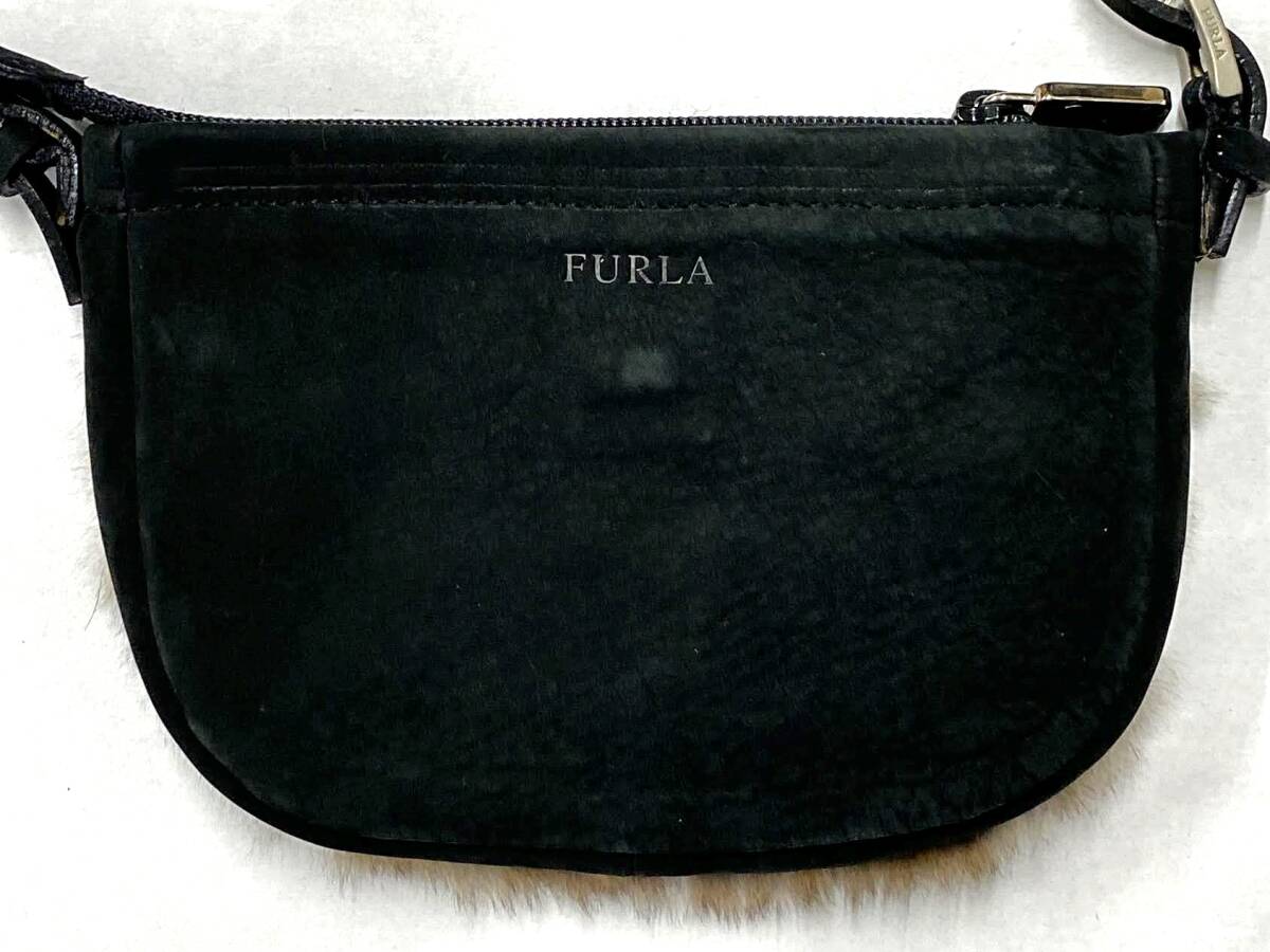 【即決】 FURLA ショルダーバッグ アクセサリーポーチ 片面ファー ブラック 小物 コンパクト 保存袋 フルラ