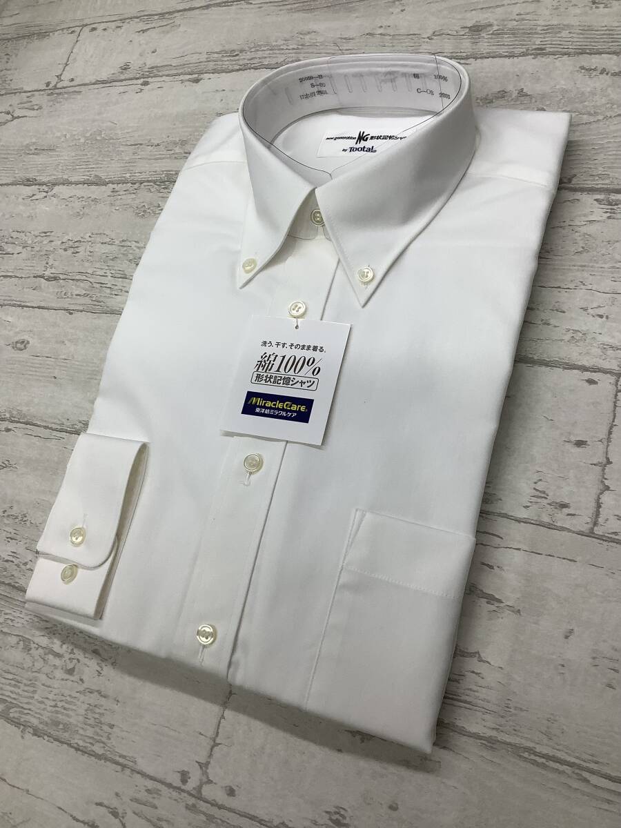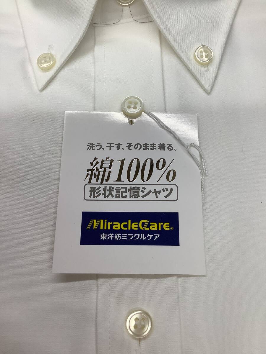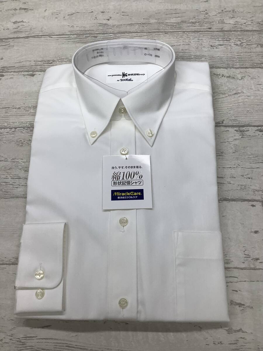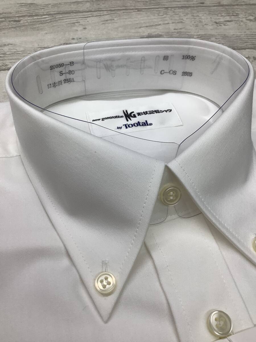 37-80 長袖 Sサイズ ★ ボタンダウン カッターシャツ 定価5,900円の品 ★綿100%  ★白無地 形状記憶シャツ NO.PO003