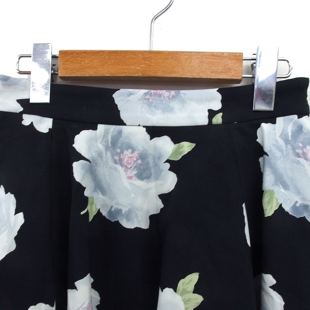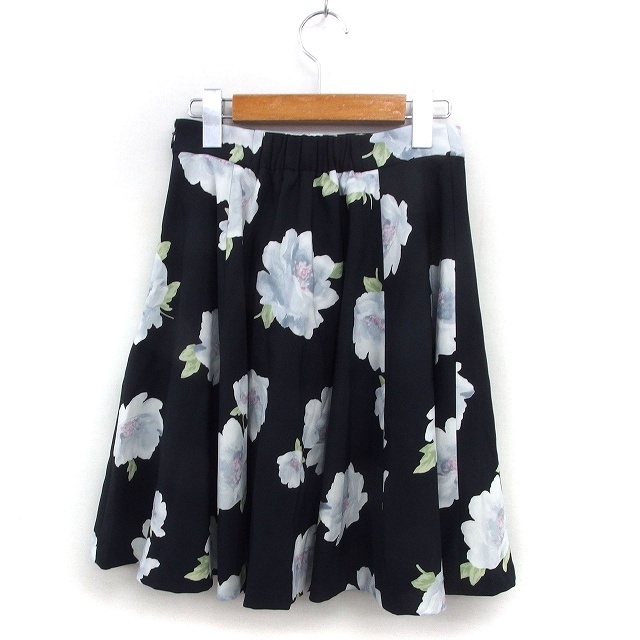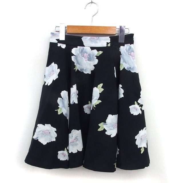 トランテアン ソン ドゥ モード 31 Sons de mode フレア スカート ひざ丈 フラワープリント サイドジップ 36 黒 ブラック /NT31 レディース