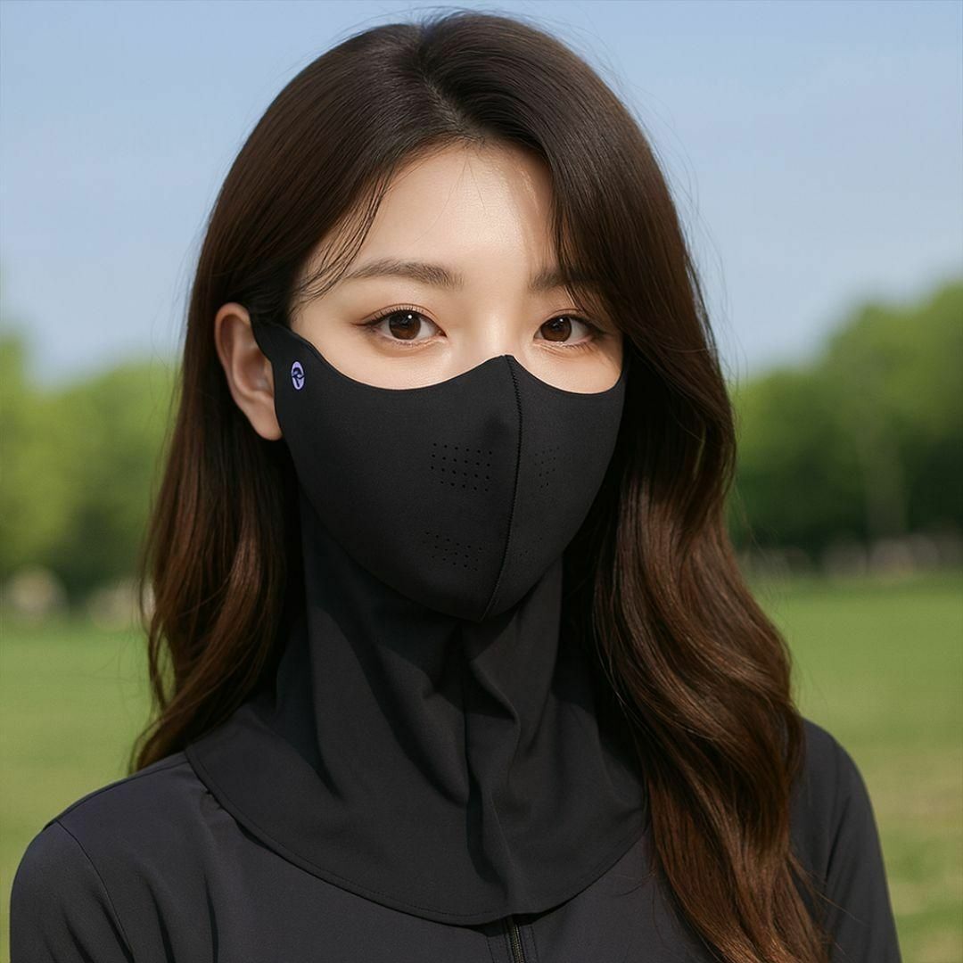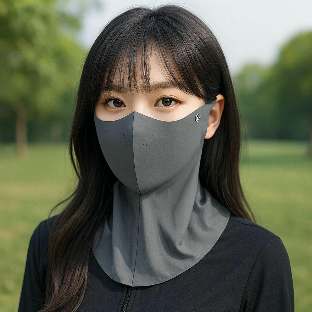 紫外線対策や夏の熱中症対策にぴったりな「ネックカバー付きマスク(グレー)」です