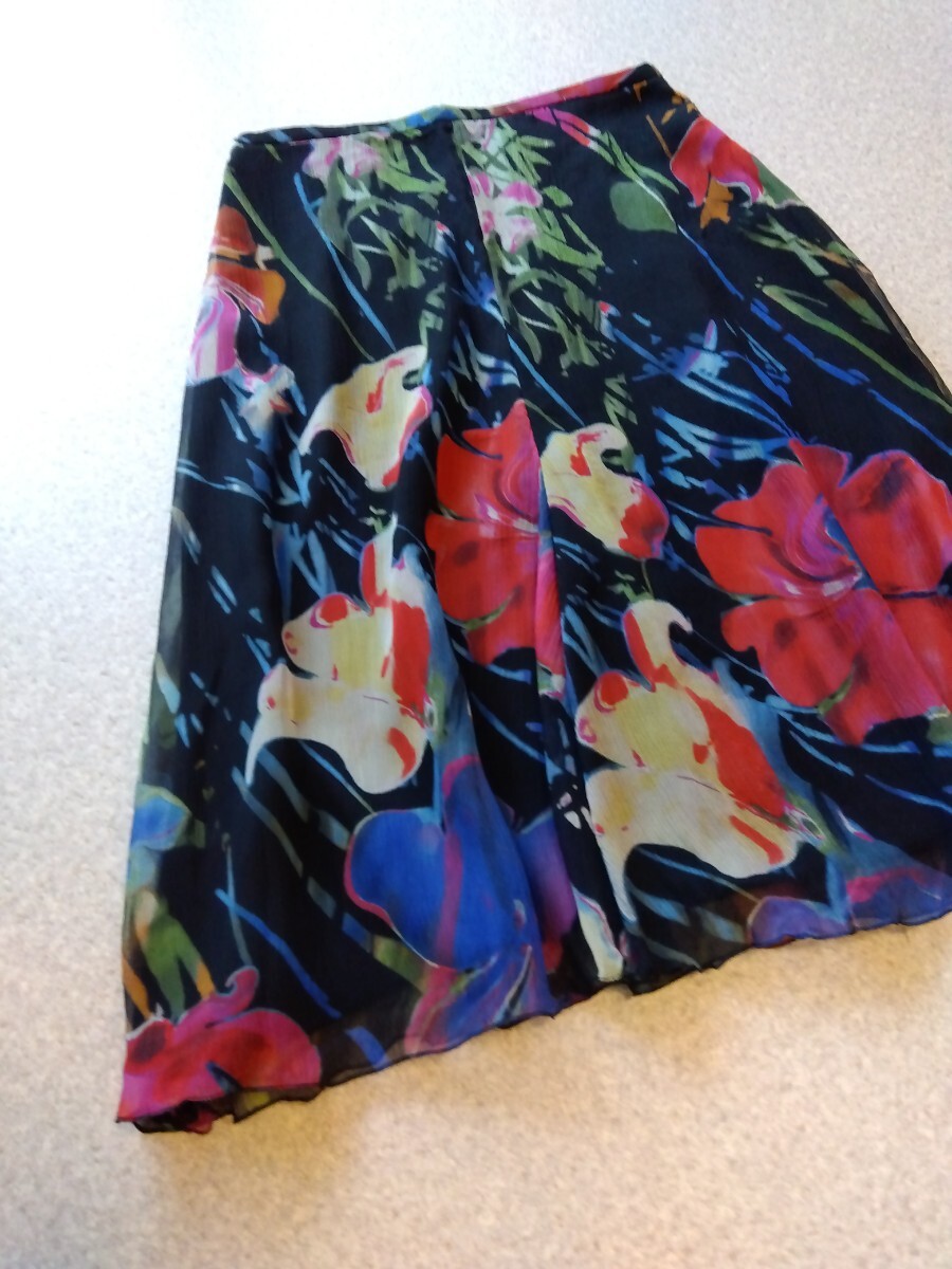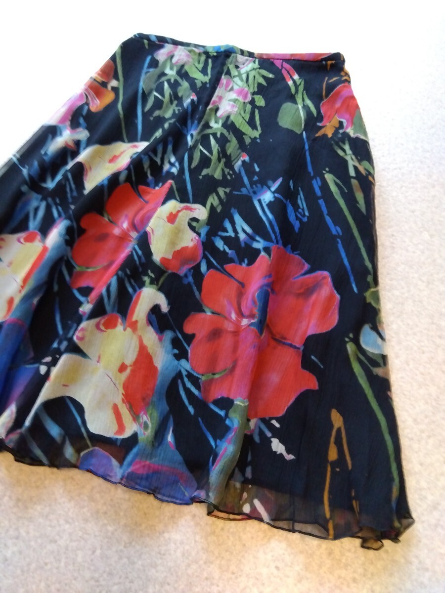 シルクシフォンの軽やかな生地で上品な膝丈です。