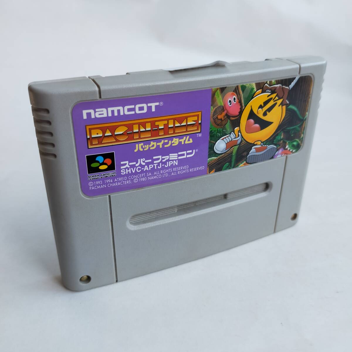 【日本語】 『パックインタイム』は、名作「パックマン」を新しい形で楽しめるアクションゲームです。時を越えて冒険するパックマンは、泳いだり、鎖を使ったり、さまざまなアクションが魅力。個性豊かなステージと頭を使うパズル要素が絶妙に融合し、飽きのこない面白さが詰まっています。レトロファンも新しい発見ができる一本です!【英語】 'Pac-In-Time' reimagines the classic Pac-Man with exciting time-travel adventures. Now Pac-Man swims, swings, and uses chains to overcome clever puzzles and explore unique stages. The blend of action and puzzle-solving is masterfully balanced, making it endlessly engaging. Retro fans and newcomers alike will find plenty of reasons to love this Super Famicom gem!