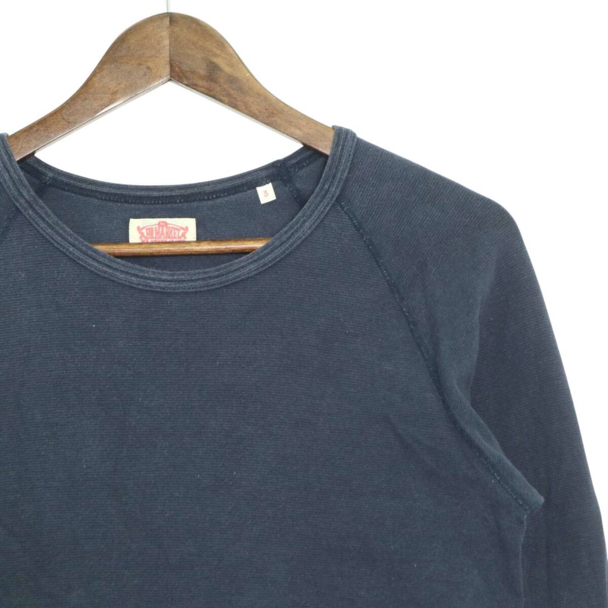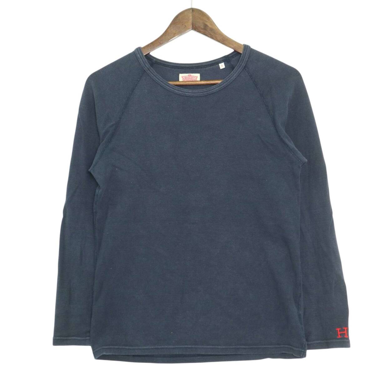 H.R.MARKET ハリウッドランチマーケット H刺繍★ ストレッチ フライス 長袖 カットソー ロンTシャツ Sz.3 メンズ 紺 日本製