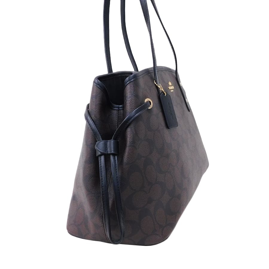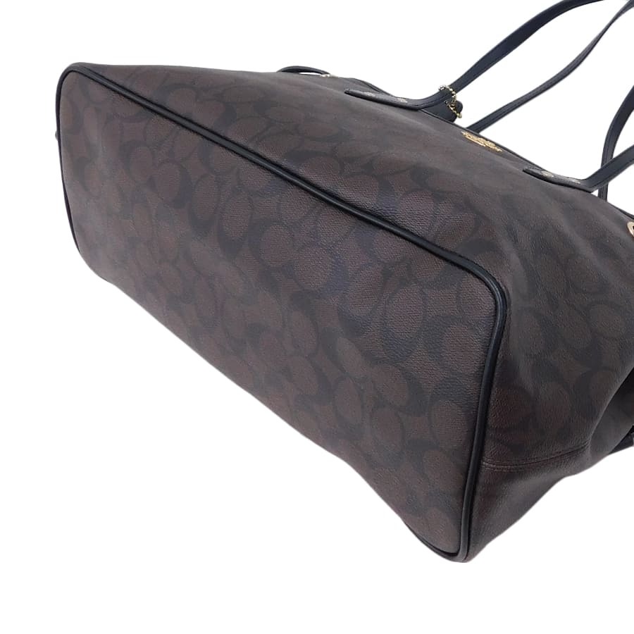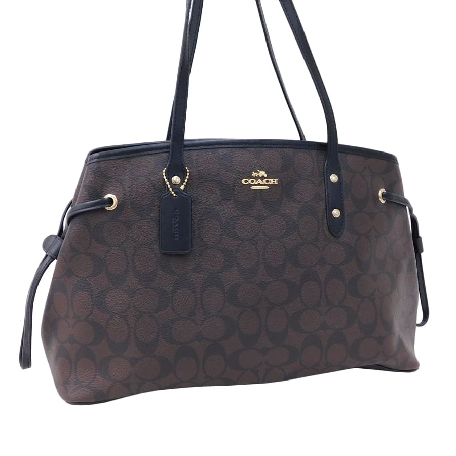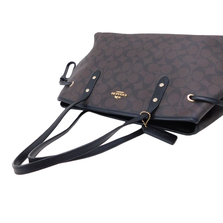 1円■新品同様/コーチ/トートバッグ/PVC×レザー/ブラウン系×ブラック系/レディース/買い物/F57842/COACH ■E.Bll.tl-11[中古]