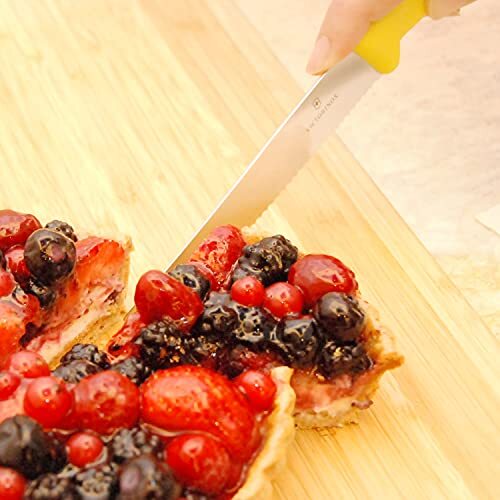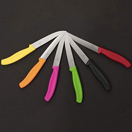 スイスクラシック・シリーズの『グルメナイフ』はブレードが先に向かって絶妙な角度で反りあがっているため、食材を切りぬく際に波刃が最後まで食材をとらえ続ける。 パンやスイーツはもちろん、ブロック肉やステーキ、ピザなどの切りにくい食材もスムーズに切り抜くことができる。 ハンドルカラーは伝統のレッド、ブラックとフルーツカラーの4色で計6色。キッチンや食材に合わせて好みのカラーをチョイスできる。