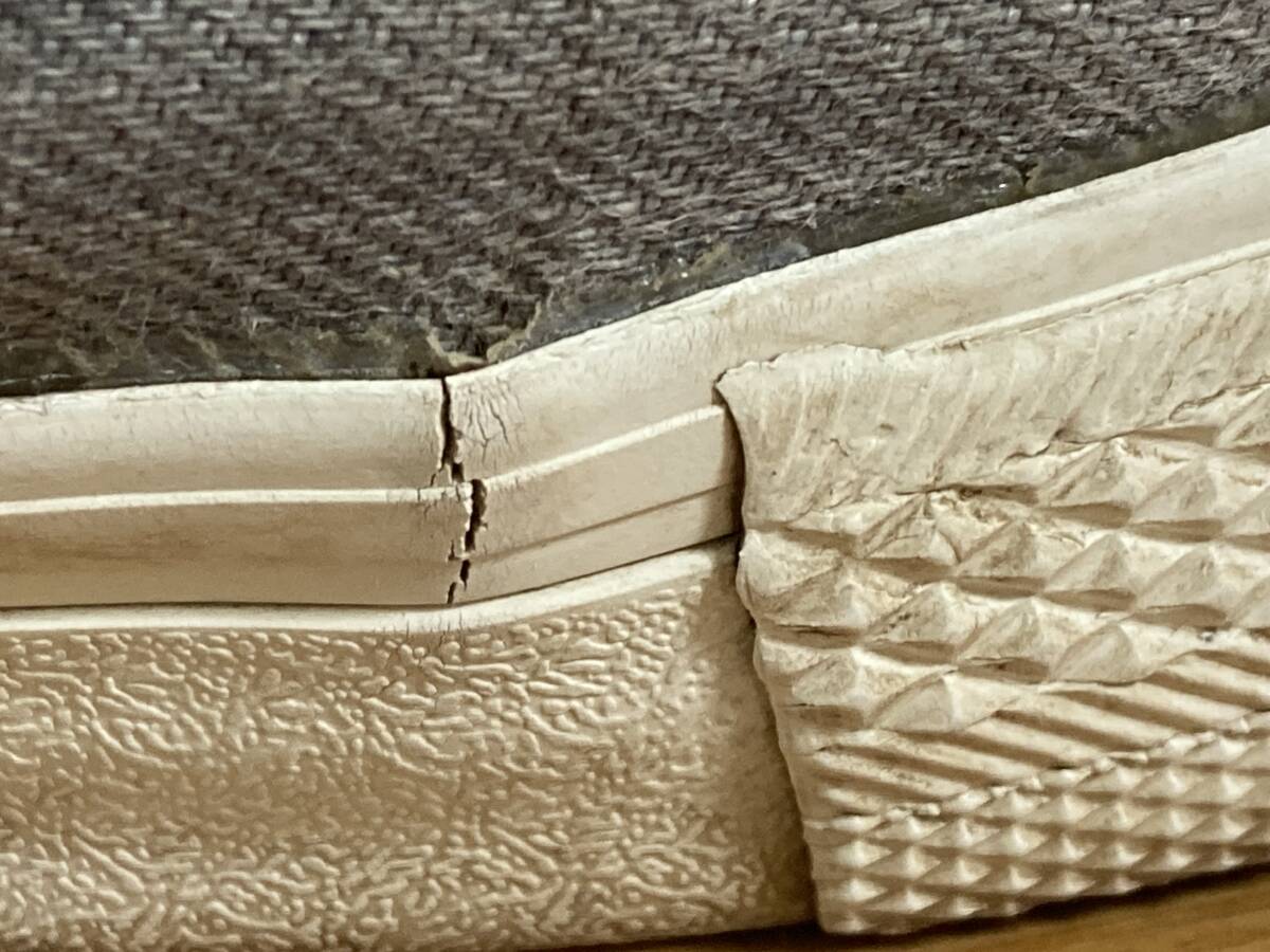 画像10のピンク色の素材は紙なので、劣化が早いです つけ置き洗いをすると、ふやけてしまいます