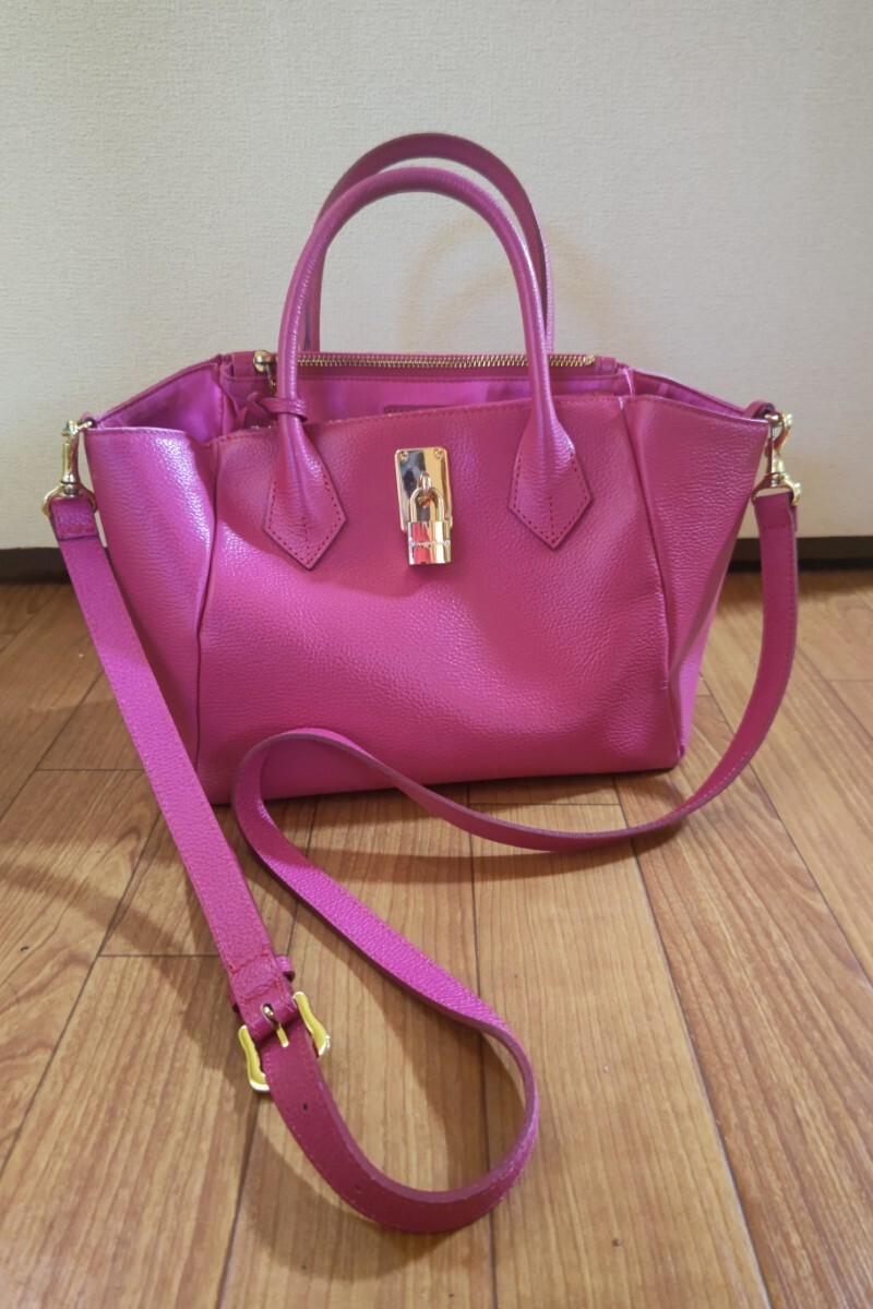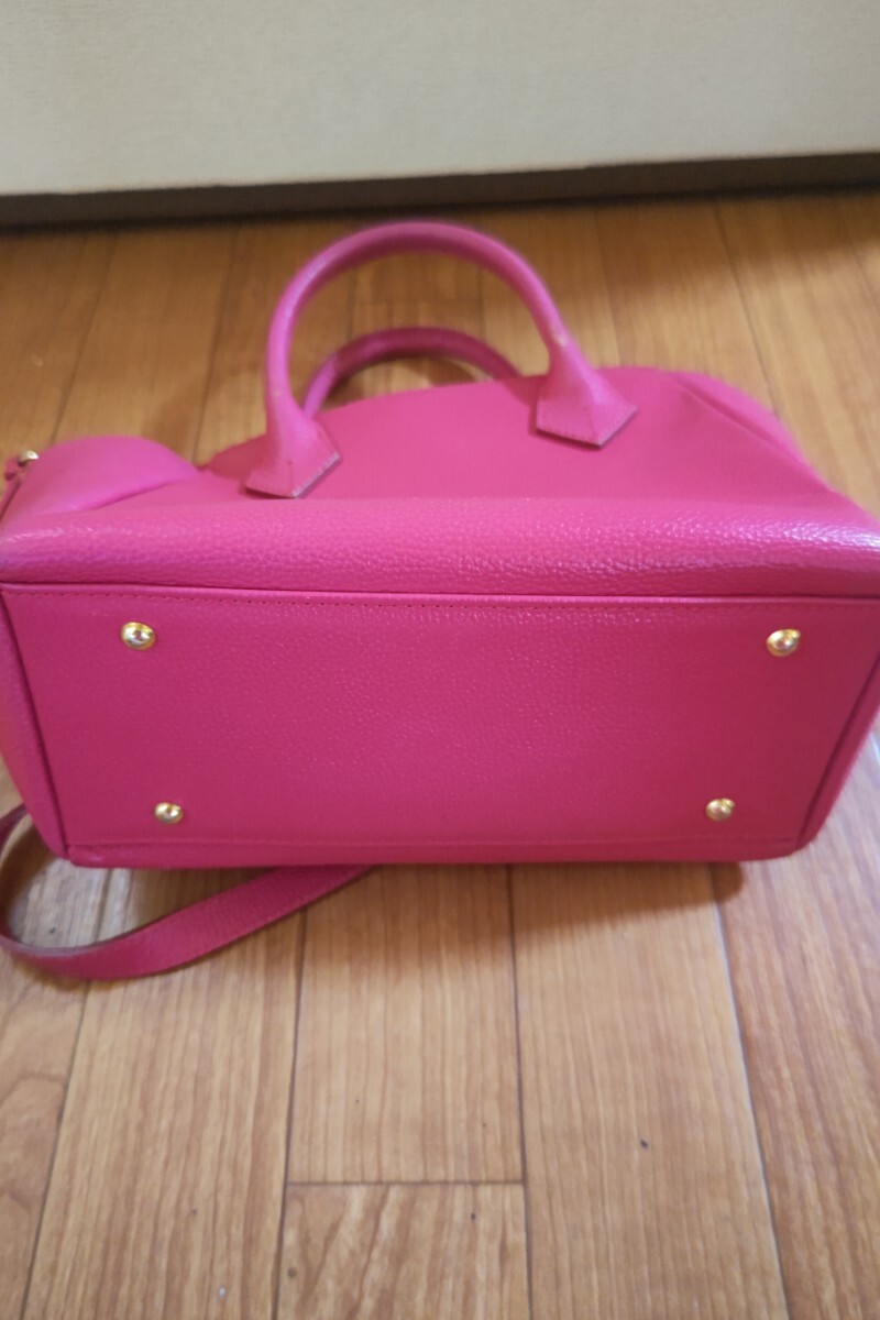 カラー...ピンク サイズ...幅約25cm、高さ約20cm、マチ約12.5cm 重さ...約745g ショルダーストラップ有り 内側両サイドにチャックのポケット、中にチャックのポケット1つ、ポケット2つ