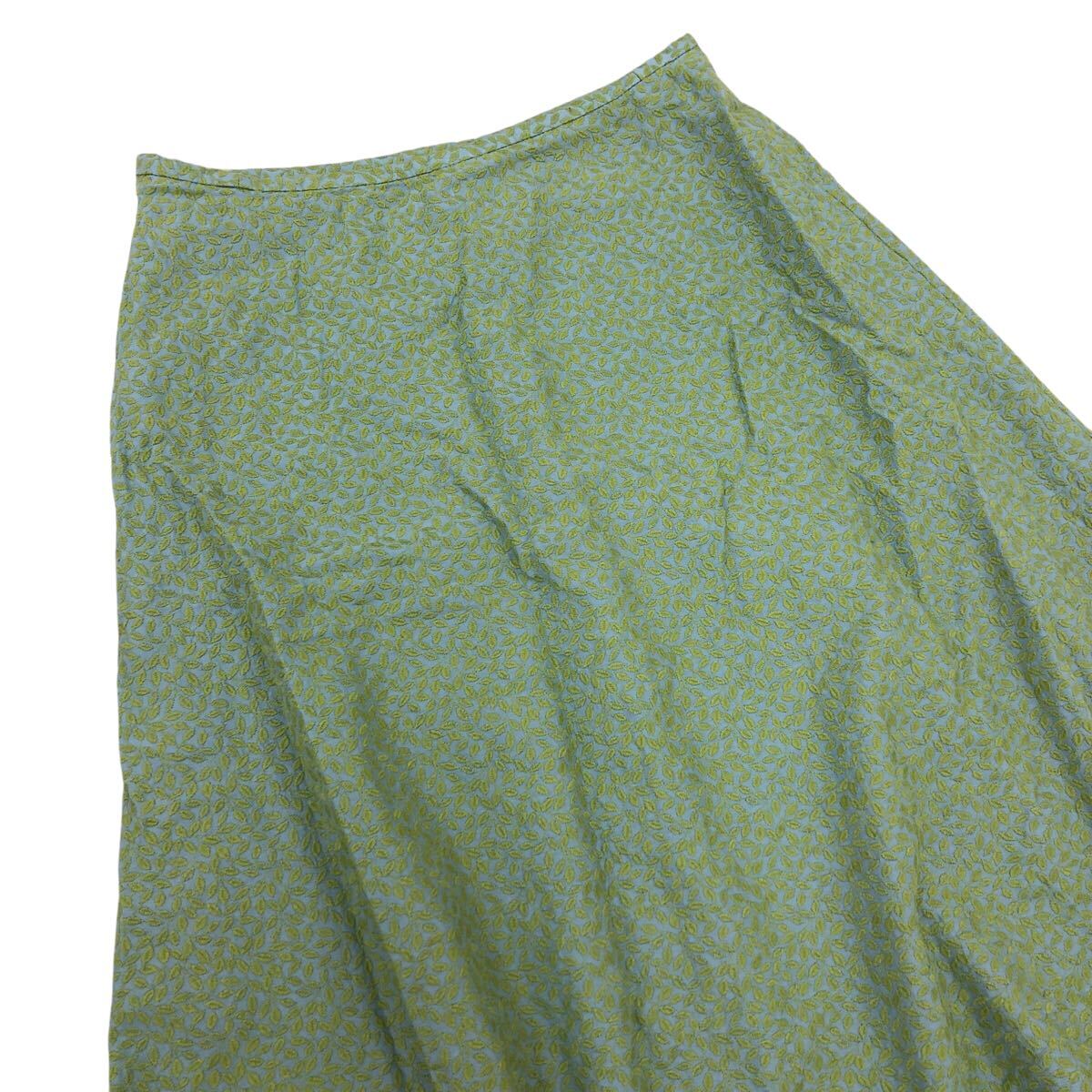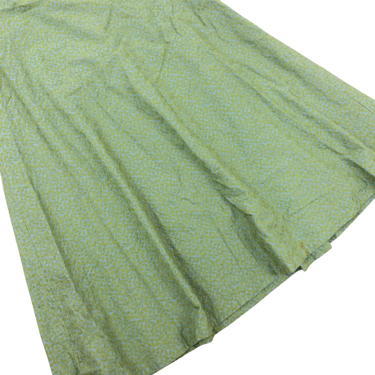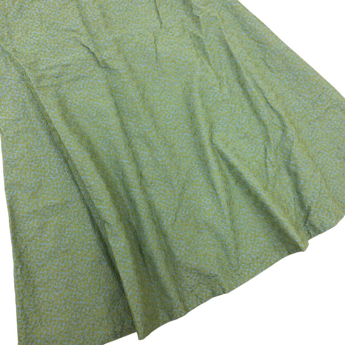 Nm316-74 Sybilla シビラ リーフ 葉っぱ 総柄 刺繍 コットン フレアスカート スカート ボトムス グリーン系 レディース L 日本製