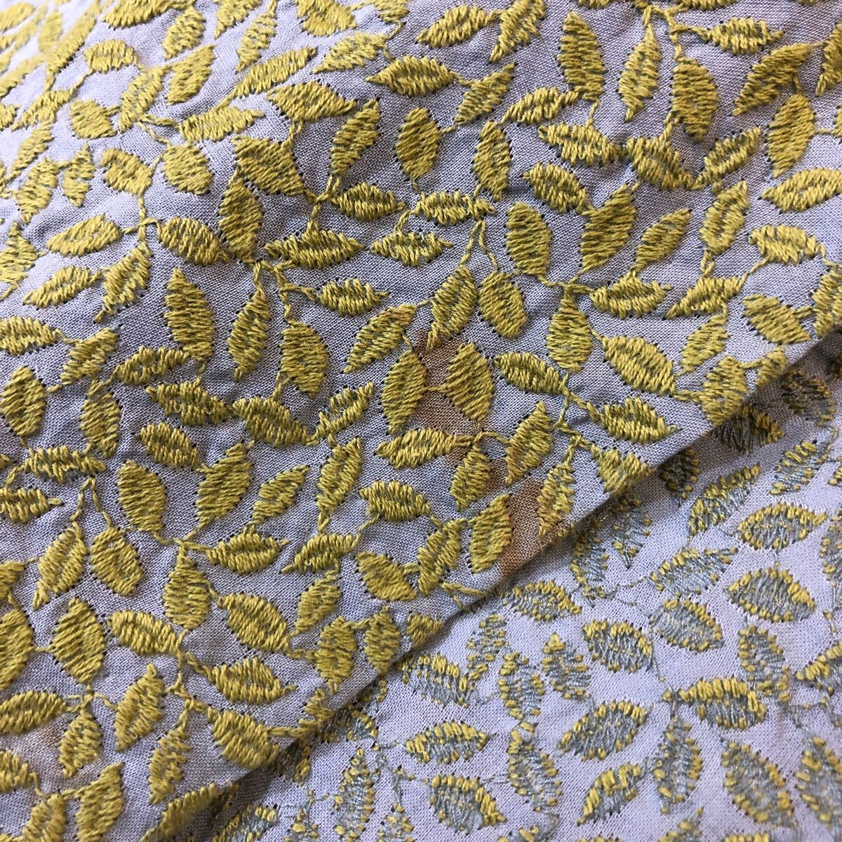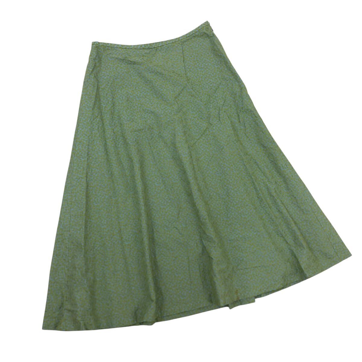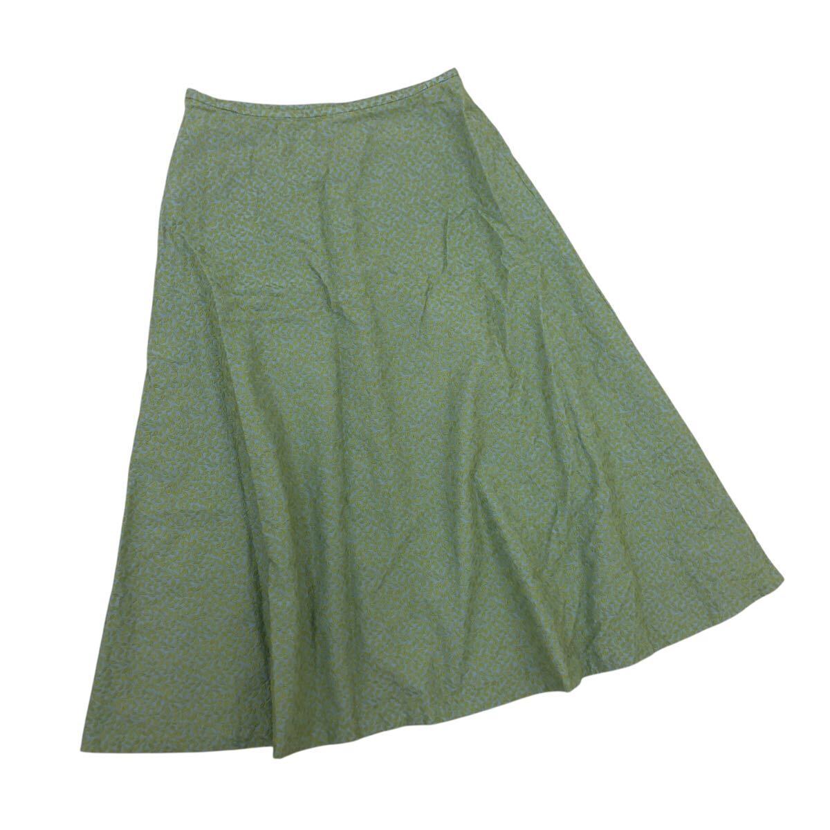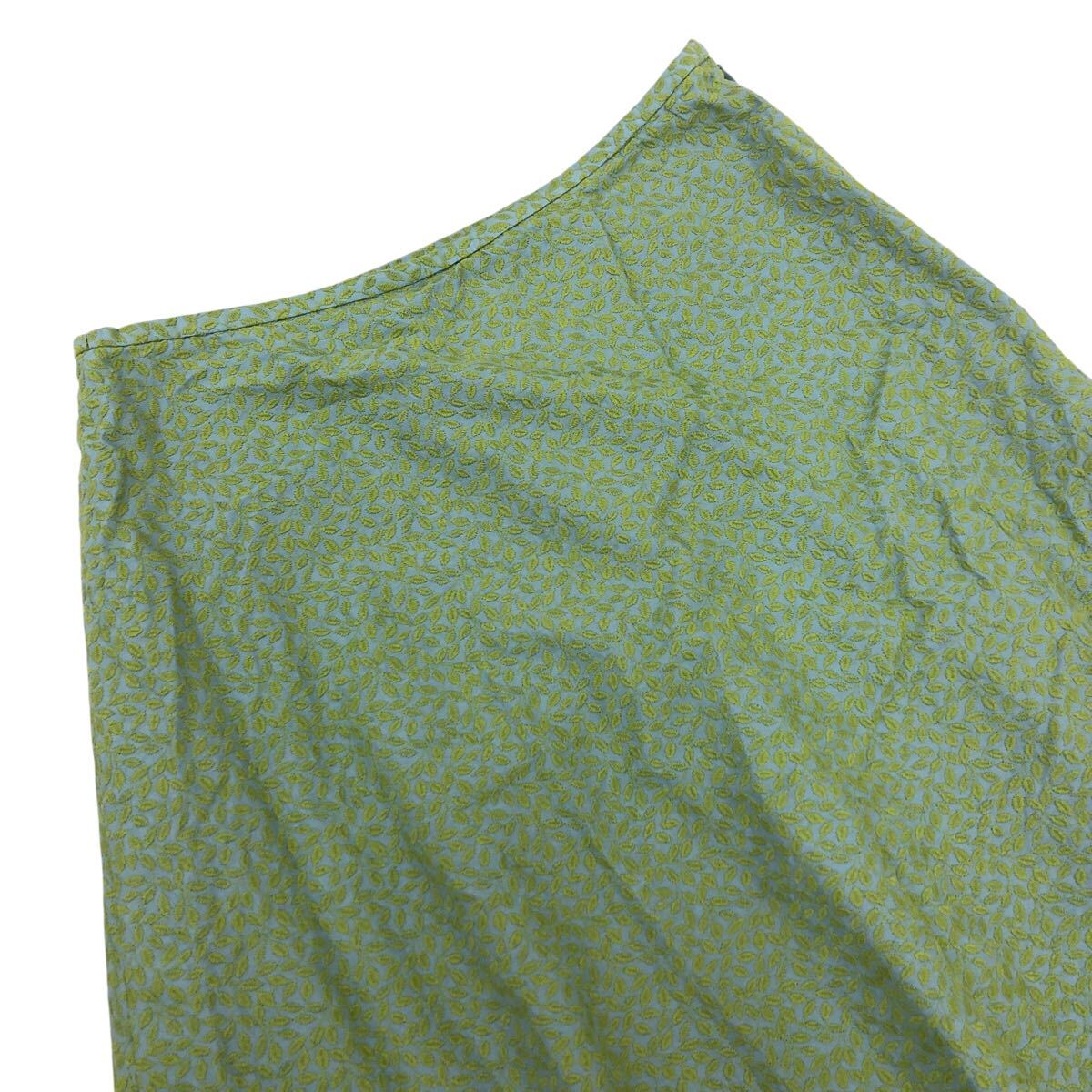 Nm316-74 Sybilla シビラ リーフ 葉っぱ 総柄 刺繍 コットン フレアスカート スカート ボトムス グリーン系 レディース L 日本製