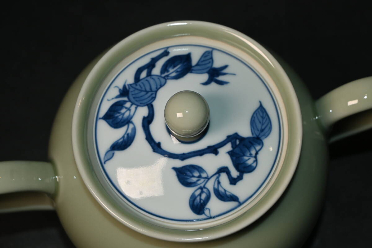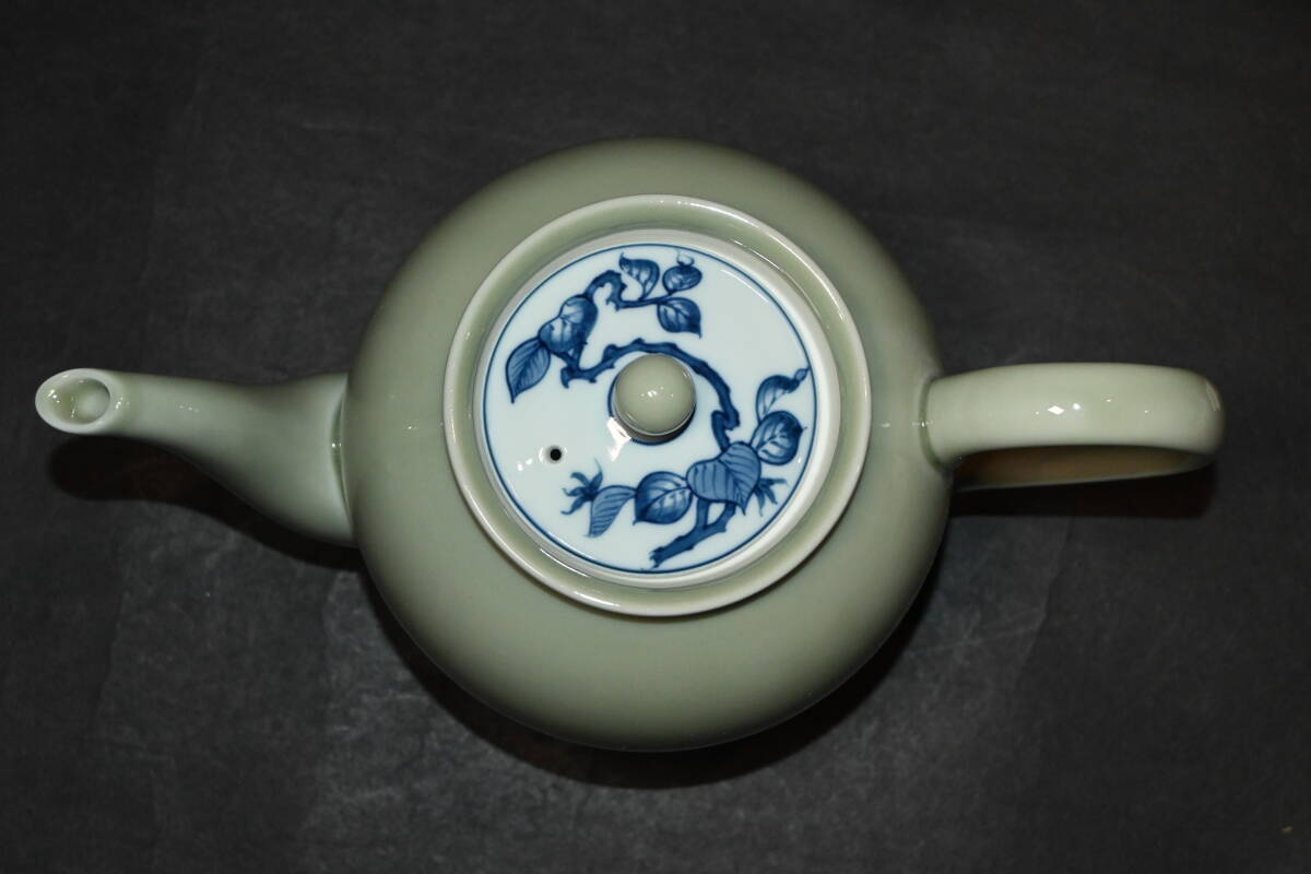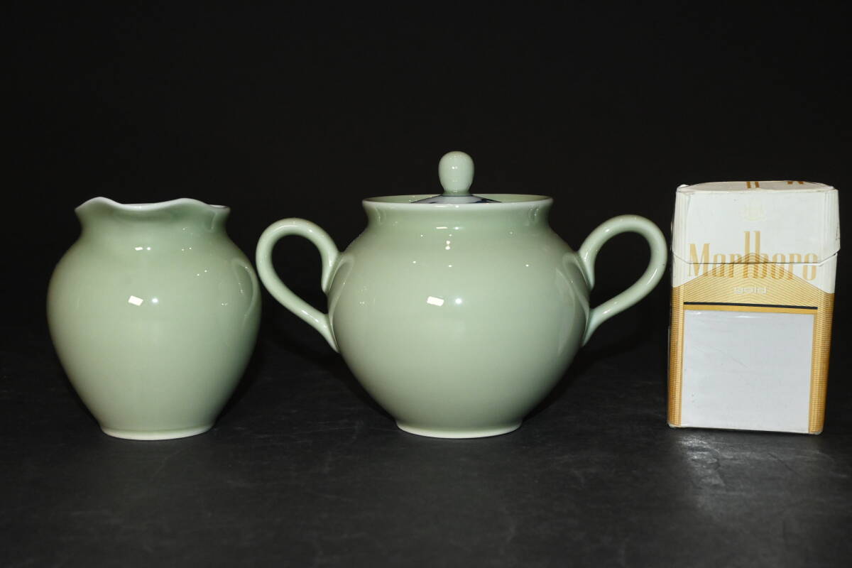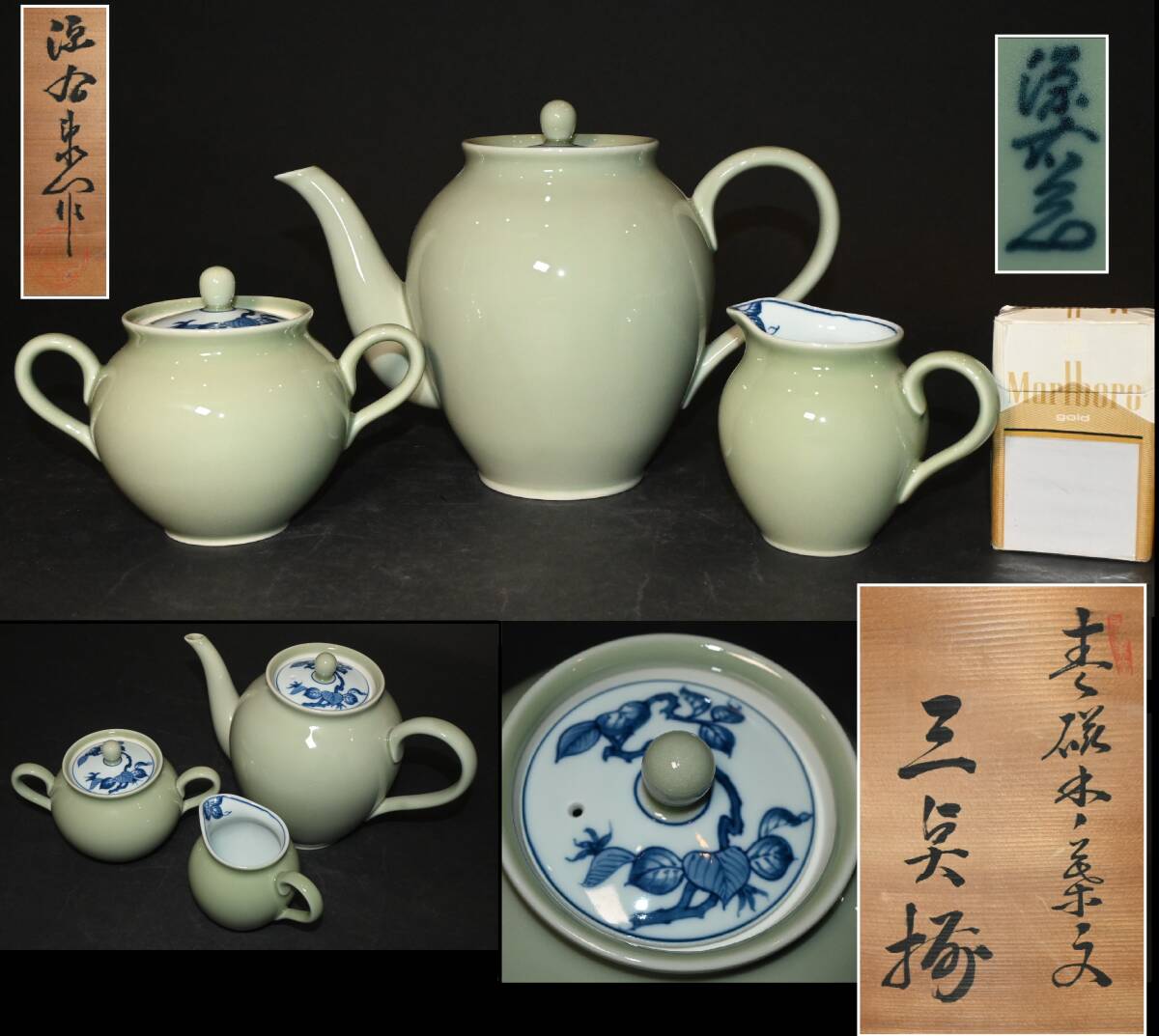 ティファニー×館林源右衛門窯【Tiffany 源】青磁 木ノ葉文 三点揃 未使用品 共箱 ポット・ミルク入・砂糖入 コラボ Wネーム 洋食器 茶道具 | |||