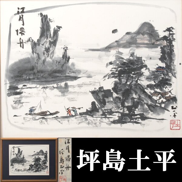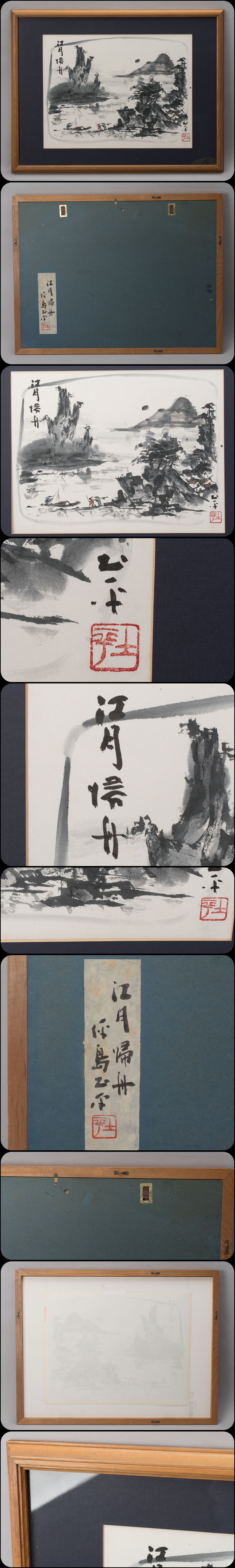 | 坪島土平の「江月帰舟」水墨画。真作保証。箱無。 サイズは、マット穴が幅約44.8x34.2cm。 額サイズは幅約64x49.5cm。 額はガラス入です。 本紙は、マットの境目辺りに薄っすらシミ見られます。 他、目立つシミ・汚れありません。 額に多少のアタリ傷あります。 状態・詳細は、画像でご確認お願いいたします。 |
