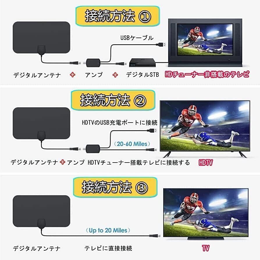 【超薄型設計&エクストララージ】0.6mmの紙と同じくらい薄い。簡単にHDTVに接続できます、両面テープが裏側に付いていたので、窓、テーブル、壁にも楽に貼り付け。。プラグを差し込んでマウントし、チャンネルをスキャンするだけです。フル4K1080pHDをデジタル対応のテレビに配信します。