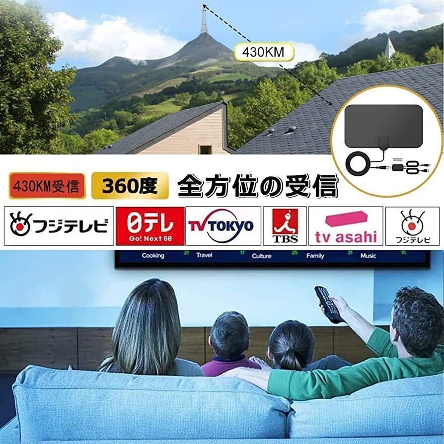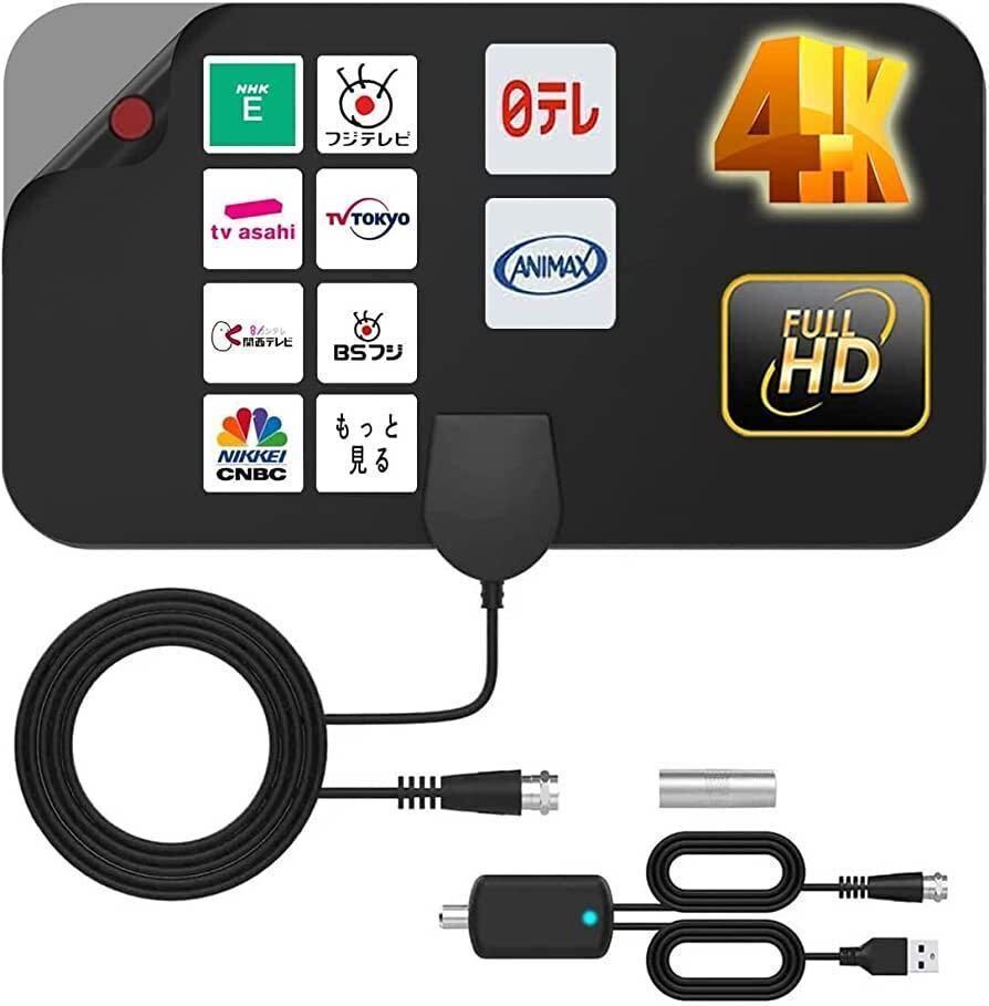 室内アンテナ 4K HD TV アンテナ 地デジ テレビ アンテナ 信号ブースター内蔵 430KM 受信範囲 360度全方位受信 高性能 高感度 UHF VHF対応 USB式 薄型&小型軽量設計 設置簡単 全種類テレビ対応 英語取扱説明書(ブラック)