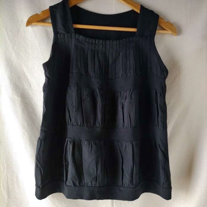 ◆【eyffmk ピンタック タンクトップ 黒 M-L】