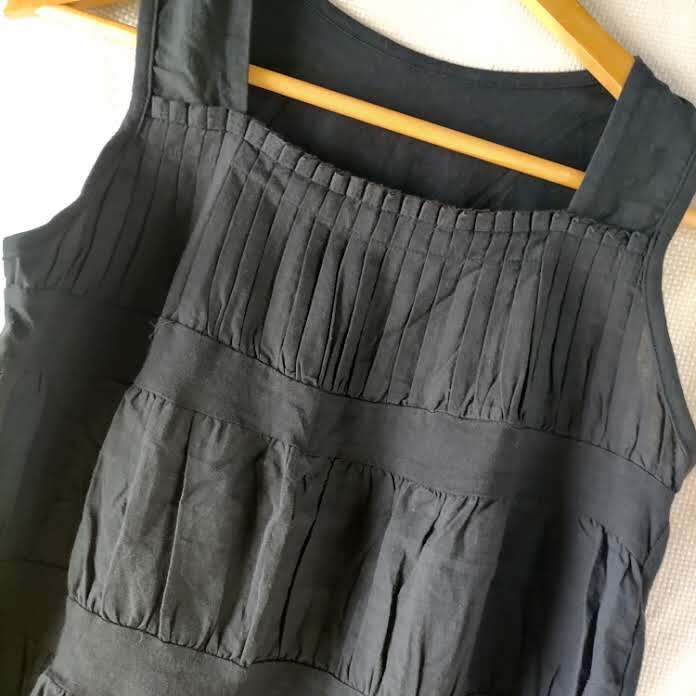 eyffmk ピンタック タンクトップ 黒 M-L/モダール 綿 コットン ブラック 袖なし プリーツ ノースリーブ トップス