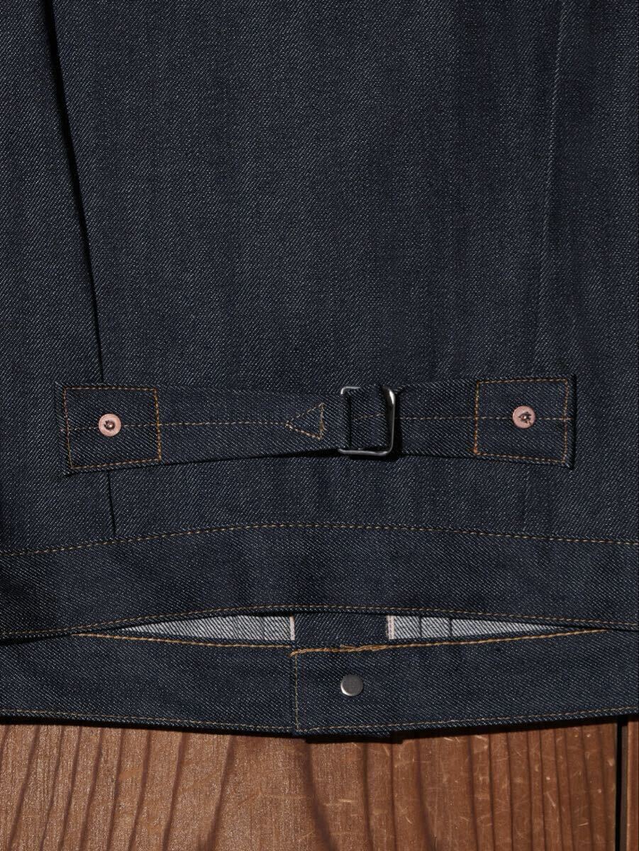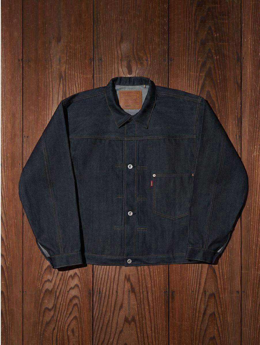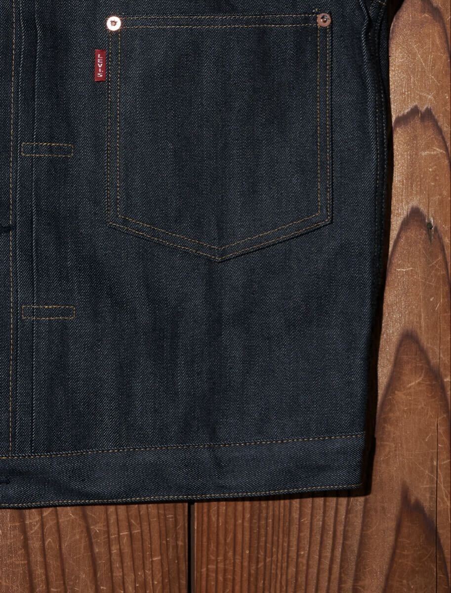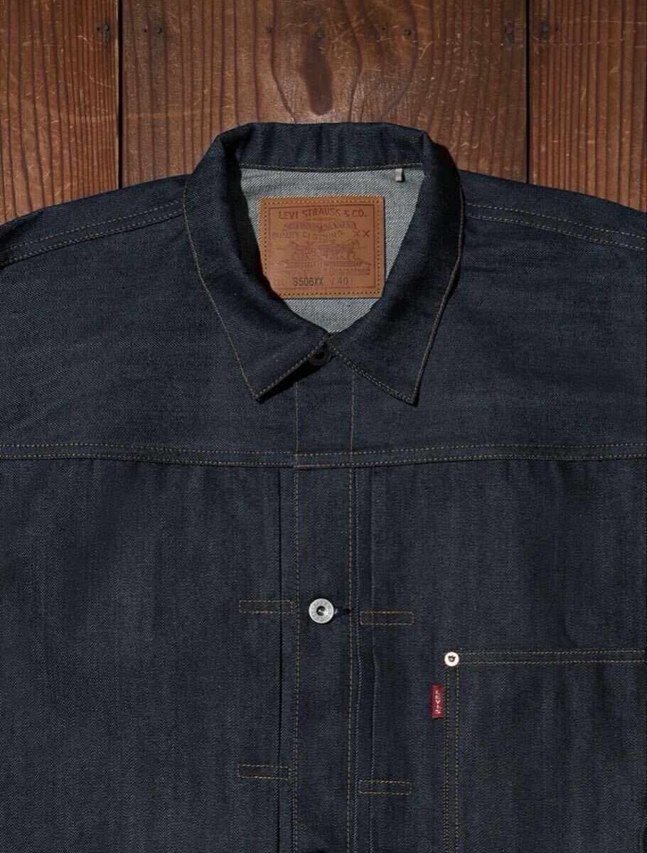 当時のモデルを復刻したLevi’s Vintage Clothingタイムラインコレクションに、1944年の通称:大戦モデルを忠実に再現したジャケットが登場。1944年は第二次世界大戦中で、アメリカ政府はすべての衣料品メーカーに対し、戦争に必要な原材料を節約するため、衣料品から一定量の金属、生地、糸を取り除くよう要請し、リーバイスもこれに協力し簡略化されたモデルに変更しました。ジャケットはポケットのフラップを外し、フロントボタンの数をも減らしました。ボタンも月桂樹ボタンやブランド名が刻印されたもの、無地ボタンなど、様々な種類のボタンが使用されています。S506XX 1944 JACKETは、12オンスのセルビッジ生地、4つのフロントボタン、フラップなしのポケット、月桂樹ボタン、剥き出しのノンブランドリベットなどが特徴で、TYPEⅠJACKETをベースに変更された生地からディテールに至るまで、オリジナルに忠実に復刻しています。パッチに刻印された 「S506XX 」 はS=SIMPLIFY(簡略化)の頭文字で、一時的に簡略化されたモデルであることを示しています。また、46サイズ以上はスプリット・バック(通称Tバック)になっており、パッチには46サイズ以上のエクストララージに見られる 「E 」の刻印があります。