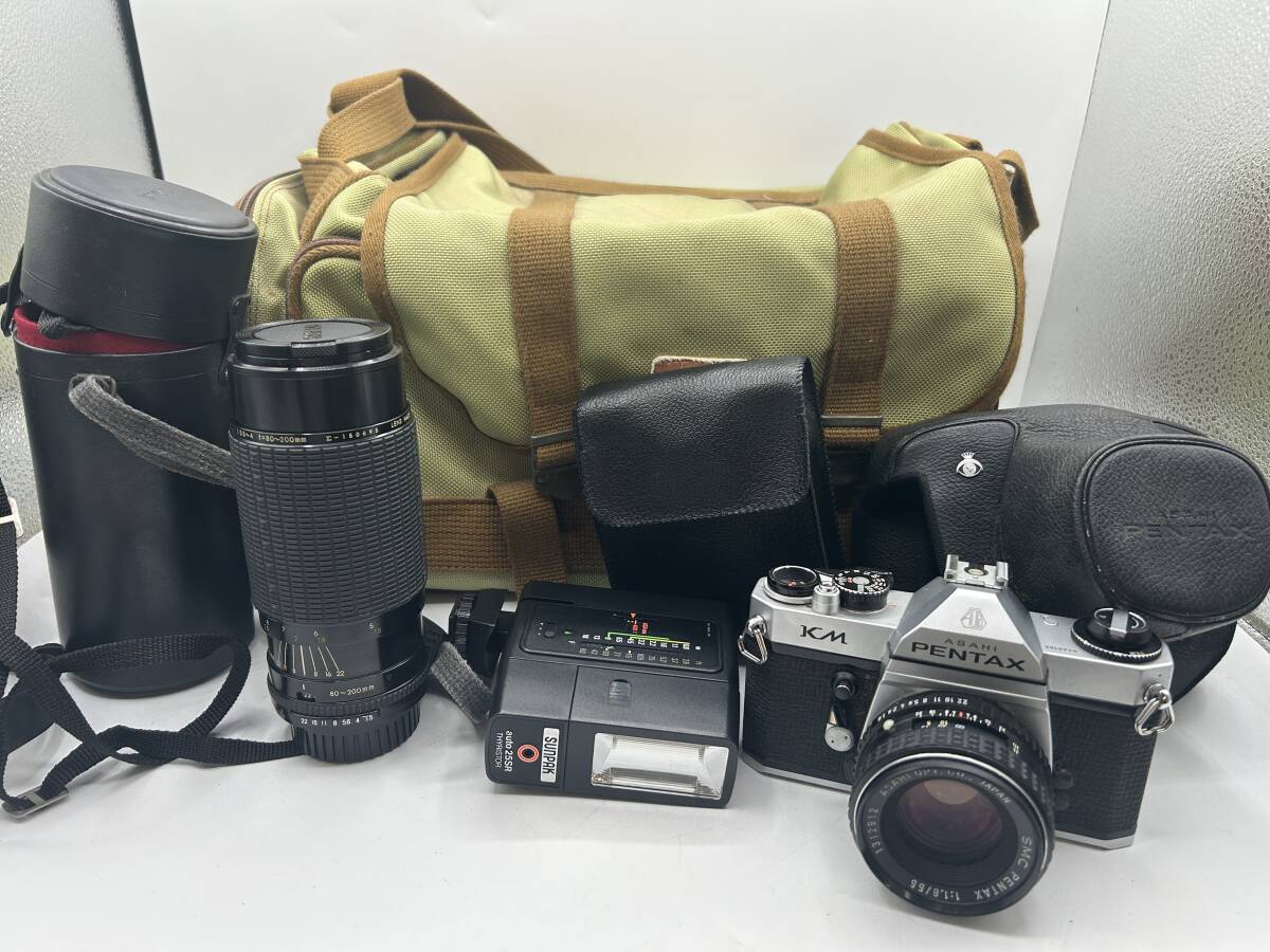 N42594☆ PENTAX ペンタックス KM レンズセット 1:1.8/55 1:3.5~4 80~200mm 一眼レフ フィルムカメラ ASAHI
