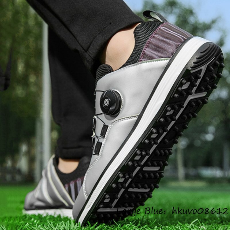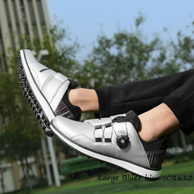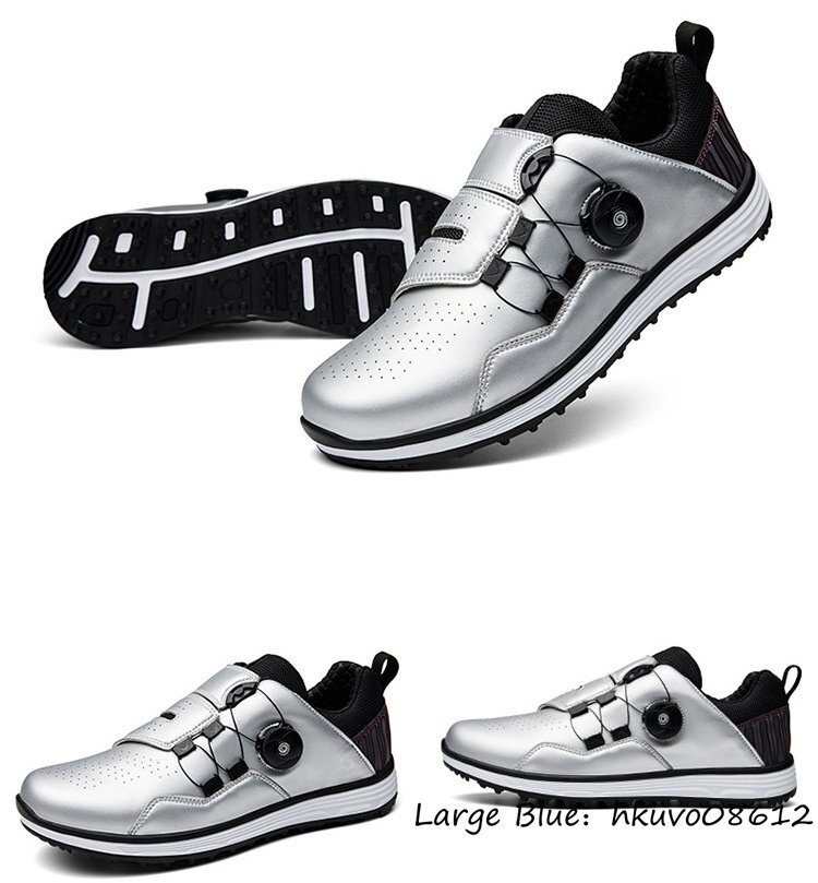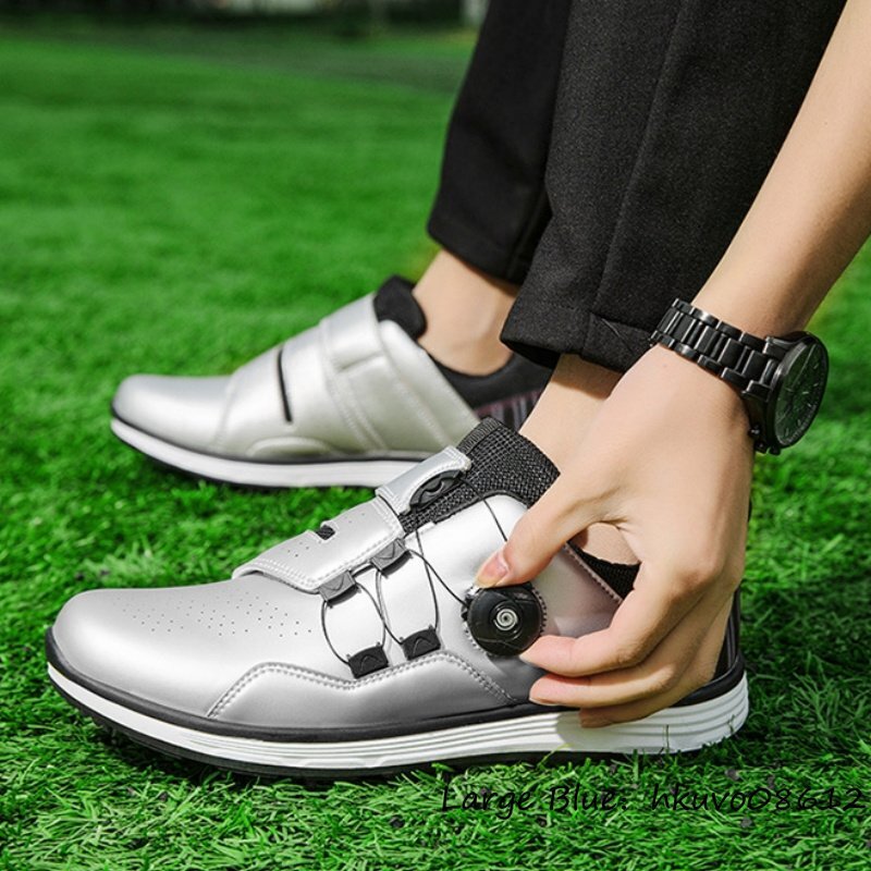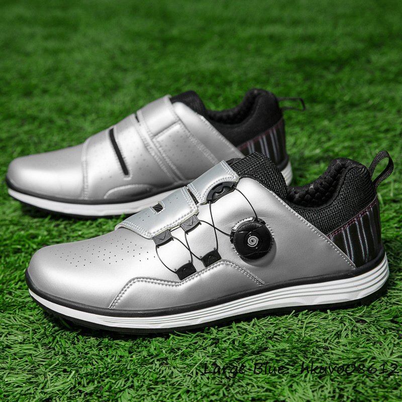 人気新品 スポーツシューズ メンズ ゴルフシューズ ダイヤル式 軽量 運動靴 4E 幅広い フィット感 防水 防滑 耐磨 弾力性 シルバー 26.0cm
