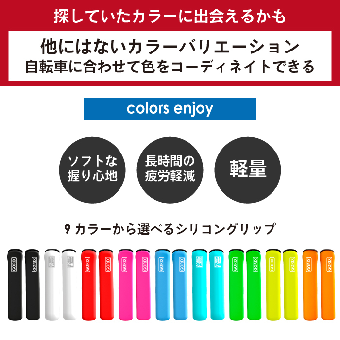 | マウンテンバイクやクロスバイク、ピストバイクなど、フラットハンドルの自転車に最適なグリップです。 シリコン素材により衝撃吸収と疲労軽減。 泥などの汚れも簡単にお手入れできます。 高品質のシリカゲル素材、超軽量で衝撃吸収性の素材です。 取り付けが簡単でハンドルバー直径22.2mmに適しています。 ・7色展開なので愛車のカスタマイズに合わせて選べます。 ・発色のいいカラーです。 ・シリコンなので取扱いが簡易です。 サイズ:長さ:12.5cm 材質:シリコン カラー:ブラック グリーン イエロー ブルー レッド オレンジ ピンク 商品のカラーはディスプレイ種類環境等により実物と異なって見える場合がございます。 入荷時より細かい傷やある事があります。気になる方や神経質な方はご購入をご遠慮ください。 | |