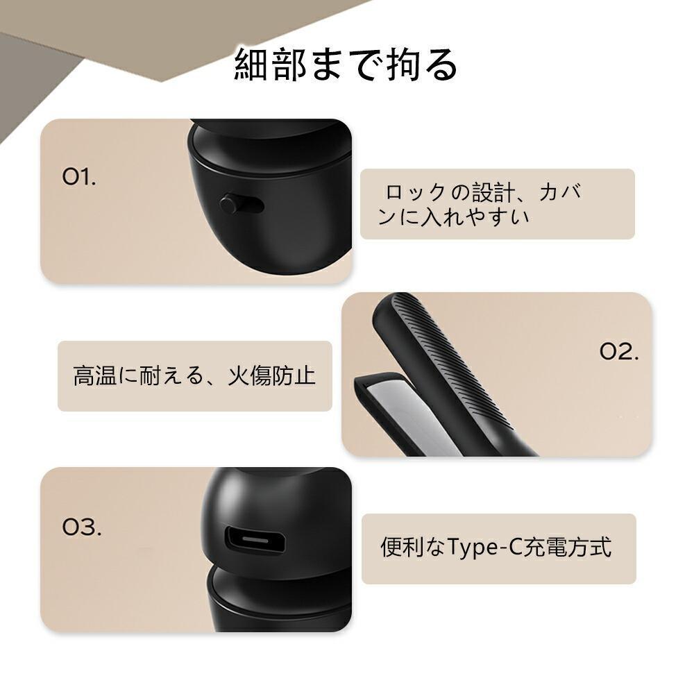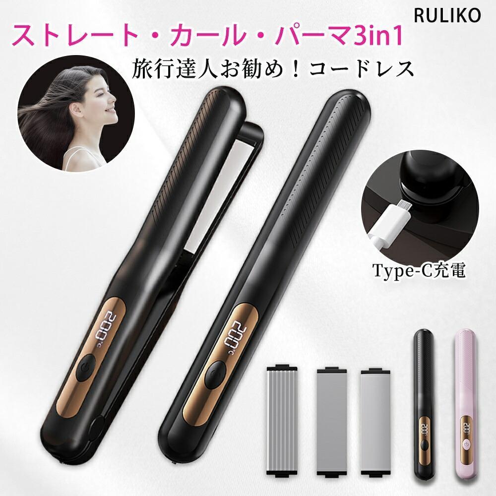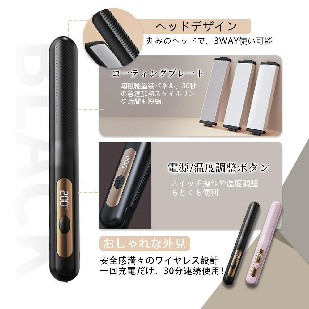 コードレス ヘアアイロン 急速加熱 ストレートアイロン Type-c 充電 コンパクト カールアイロン 前髪カール ショートヘア ヘアアレンジ パーマ ロングヘア ストレート カール 旅行 アウトドア 女性 男性 プレゼント 充電式 軽量 携帯用 30秒速熱 30分続く使用 Type-c充電 USB 208g 温度調節 160℃~200℃ マイナスイオン 男女兼用 家庭用 旅行用 携帯用