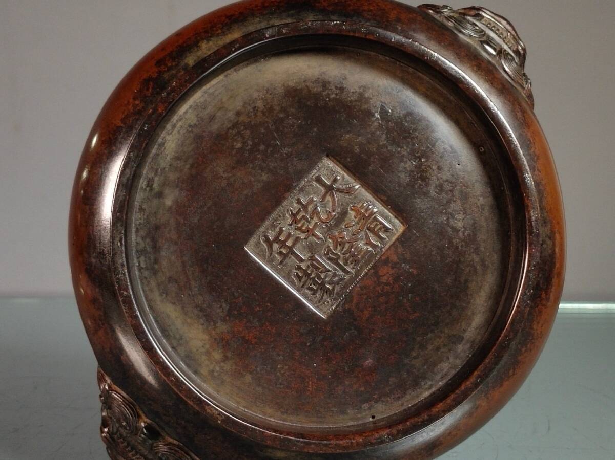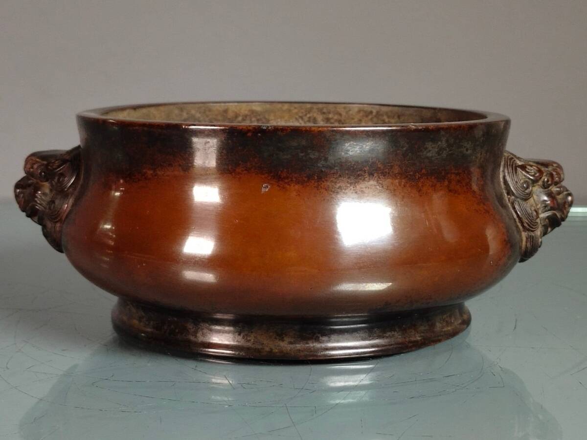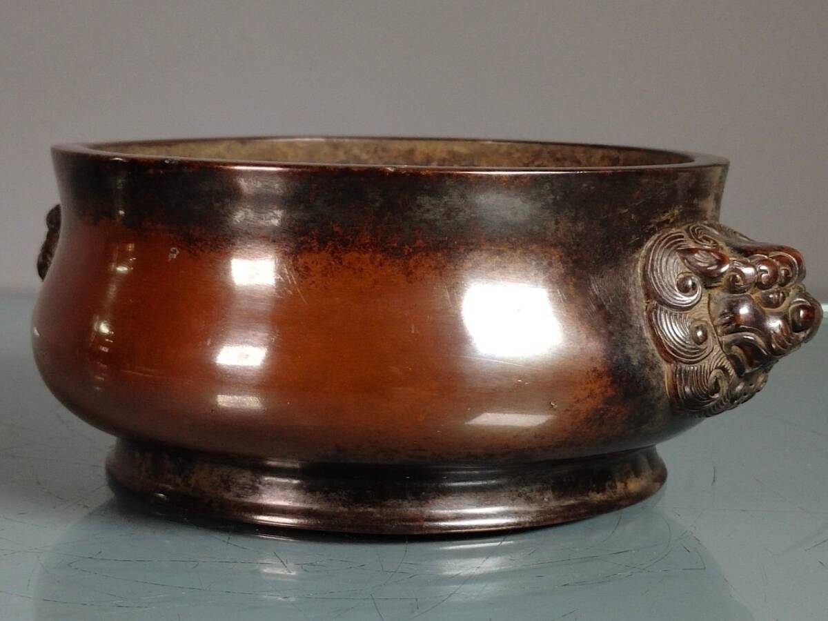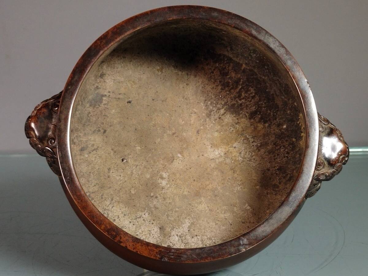 *珍品旧蔵* 清 紫銅 双獅頭耳 香炉 香道具 銅製 銅器 極細工 唐物 中国古玩 骨董品 古美味 H48
