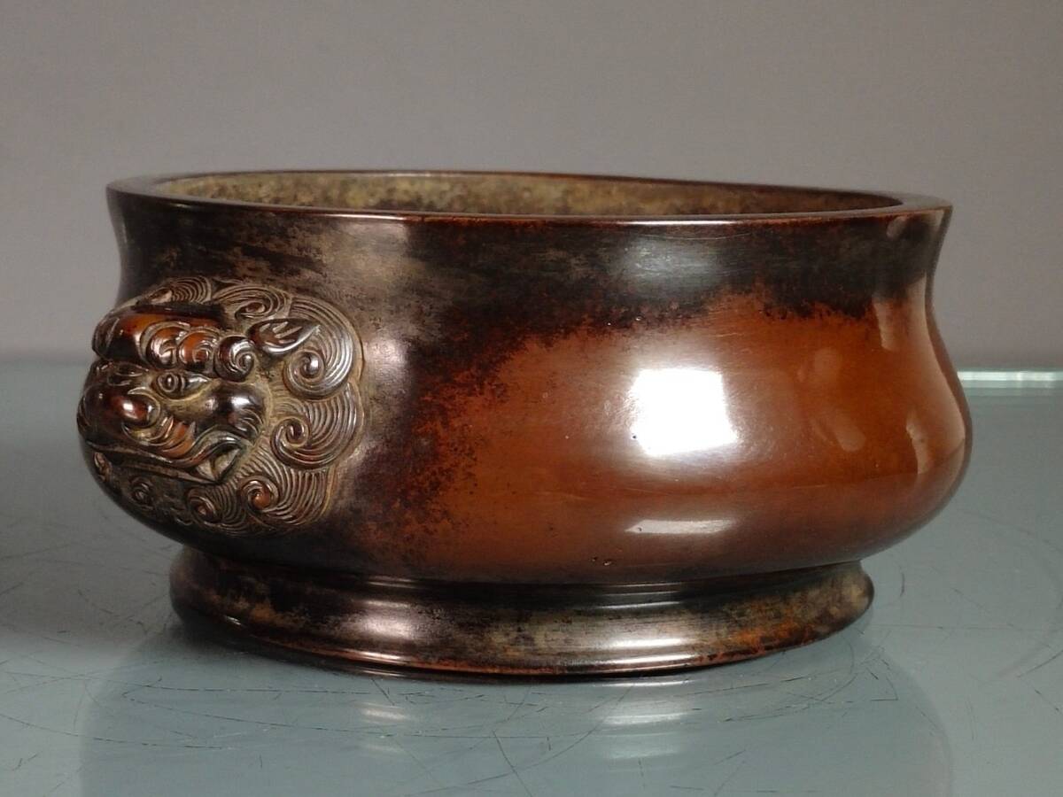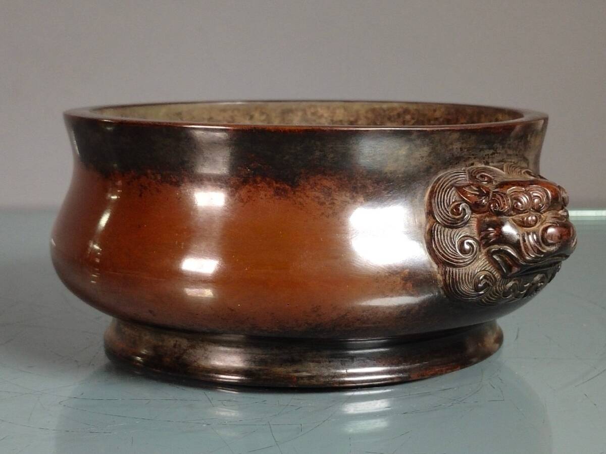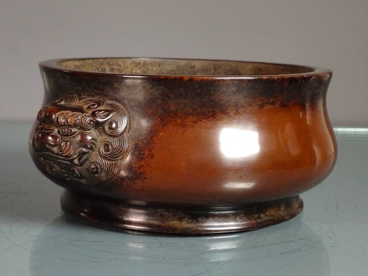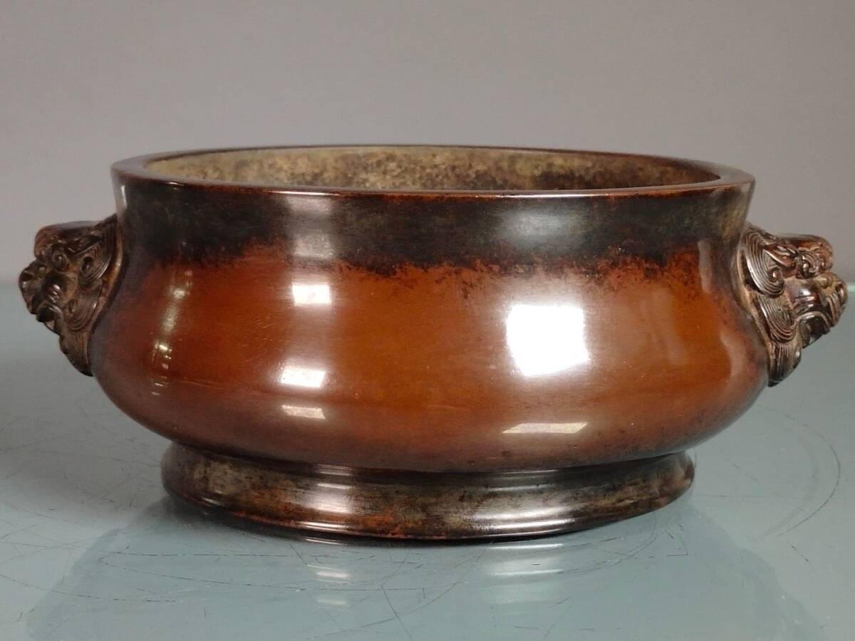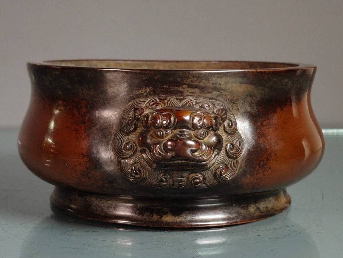 *珍品旧蔵* 清 紫銅 双獅頭耳 香炉 香道具 銅製 銅器 極細工 唐物 中国古玩 骨董品 古美味 H48