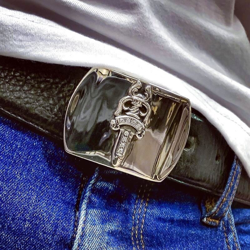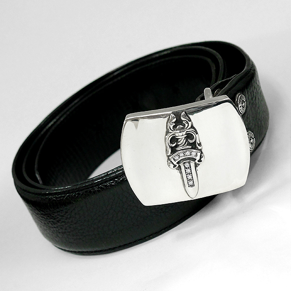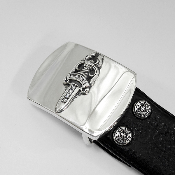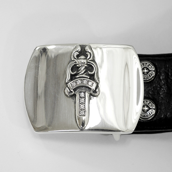 【激レア】CHROME HEARTS クロムハーツ ミリタリー バックル レイズド ダガー ダイヤ ベルト バックル レザーベルト 黒 BUCKL MIL DGR