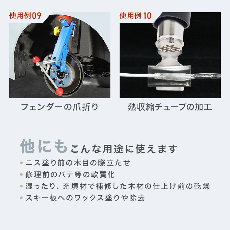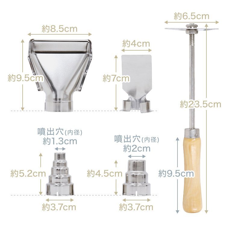 | 温度調節と風量調節で、簡単DIYから工業用途まで幅広く対応! 80℃~600℃と低温から高温まで幅広く温度調整でき、 素材に合わせて適切な温度で作業が可能です! ハイパワー&2段階風量切り替えで、作業効率UP間違いなし! また、立てて使えるスタンドフック付で、両手を使う作業がしやすくなります。 様々な作業に対応できる4種類のノズルとスクレーパー付属です。 ■商品コード:A47B ■商品仕様 カラー:ブラック サイズ:(約)25.5×19cm コード長さ:(約)約140cm 重量:(約)0.7kg 電源:110V 50/60Hz(一般の家庭用電源でも使用可能) 電力:1600W ■内容 本体、専用ノズル4種類、スクレーパー1本、日本版取扱説明書 ■注意事項 ・使用中及び使用後も先端ノズルが大変熱くなりますので十分に注意して下さい。 ・ドライヤーの様には使用できません。髪や衣類の乾燥には絶対に使わないで下さい。 ・本商品を使用したことにより生じたいかなる怪我、火傷、その他の損害などについて、弊社は一切の責任を負いません。 ・商品は、モニターによって色合いが異なって見える場合があります。 ・仕様・デザインは改良のため予告なく変更することがあります。 ■保障期間 7日間 ※商品到着後7日以内の初期不良・破損のみご対応させていただきます。 【新品未使用品です】 |