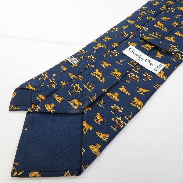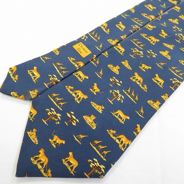 商品名 | #ae クリスチャンディオール ChristianDior ネクタイ 紺 山吹 アニマル柄 サファリ シルク フランス製 ヴィンテージ メンズ 945262 k01 |