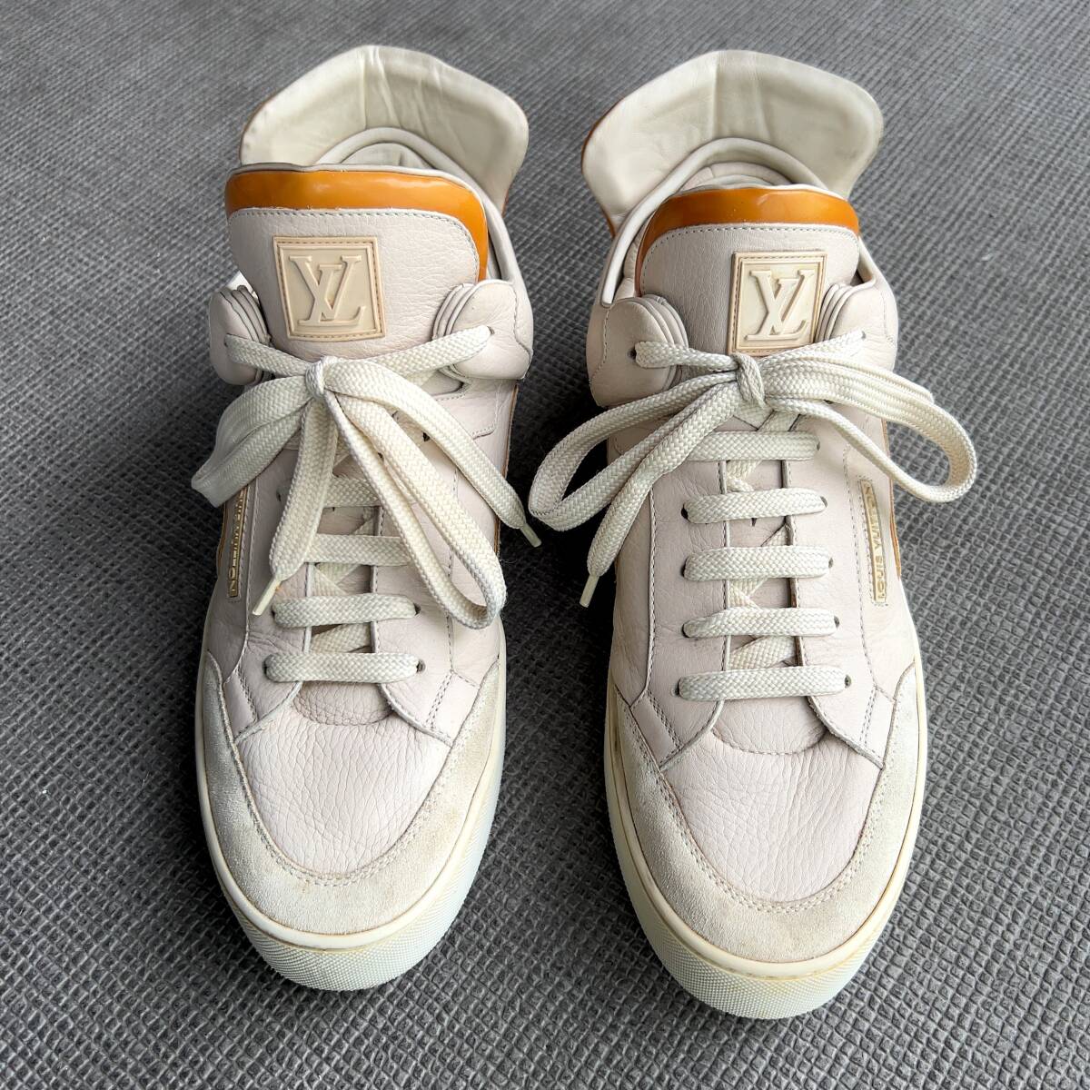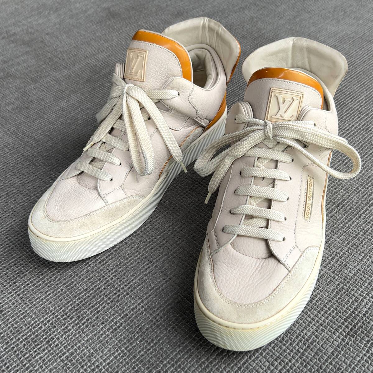 ルイヴィトン×カニエウェストのスニーカーになります。 年月が経つにつれ今なお希少価値が増している、説明不要の超限定コラボスニーカー。過去発売された全スニーカーの中でも間違いなく傑作として残るプレミアな逸品です。こちらは一番日常に馴染みやすく人気が高かったオフホワイトのカラーです。今はもう見かける事自体ほぼありませんので、コレクターの方にいかがでしょうか。自らがルイヴィトンで購入した物ですので、間違いなく本物です。 |