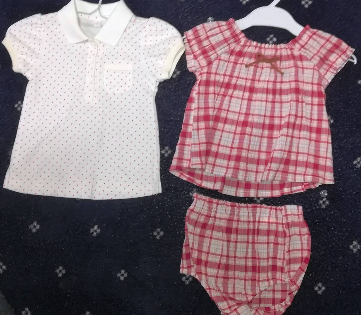 ◎新品同様(2着セット)未使用 (ベビー服.半袖.Tシャツ)サイズ.90cm)◎ (女の子用)送料無料