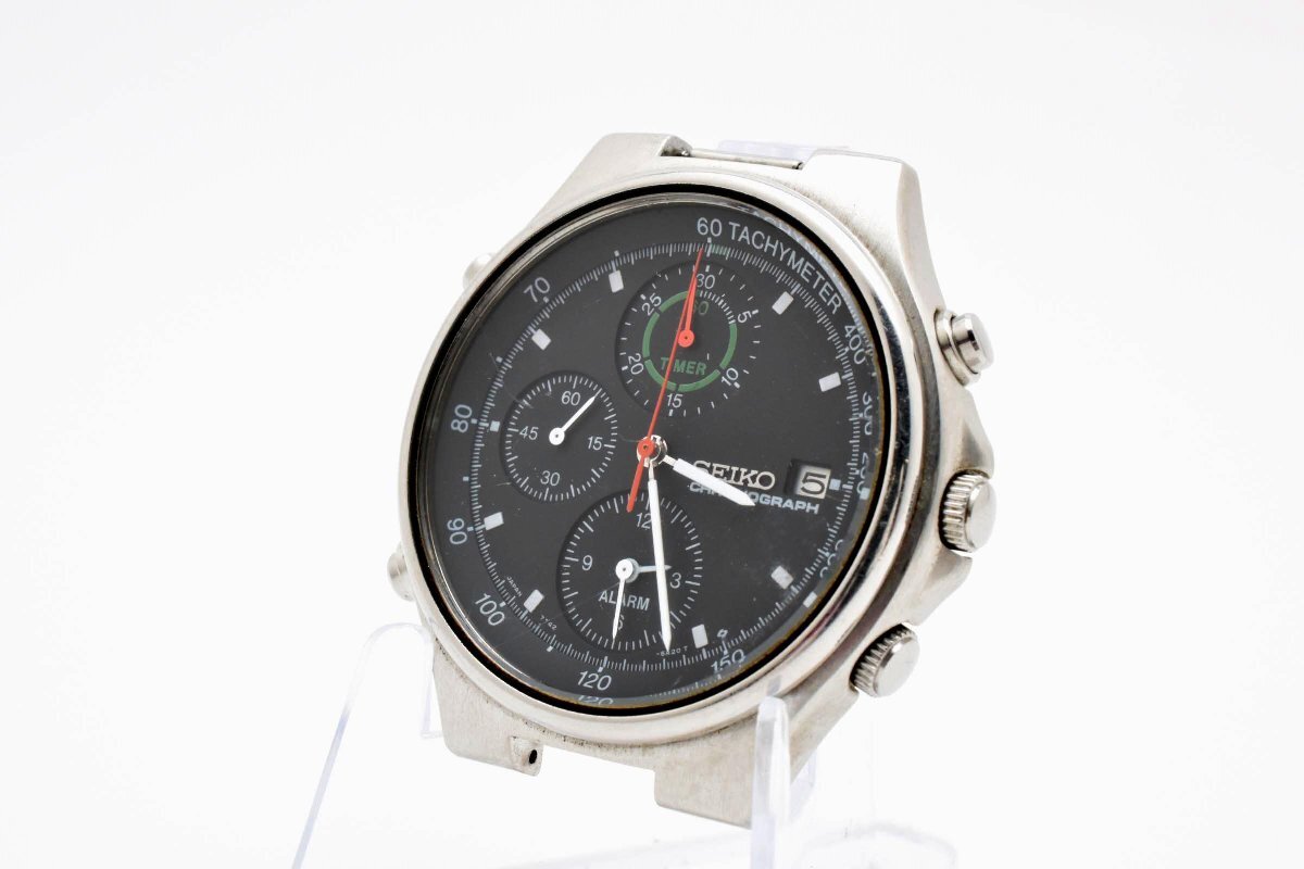 SEIKO セイコー クロノグラフ デイト 7T42-6A10 黒文字盤 銀 シルバー Silver ステンレススチール