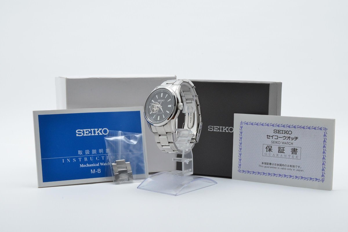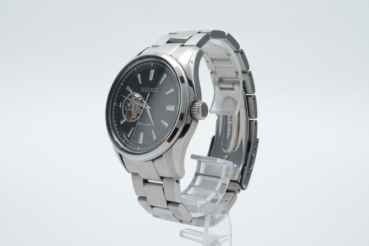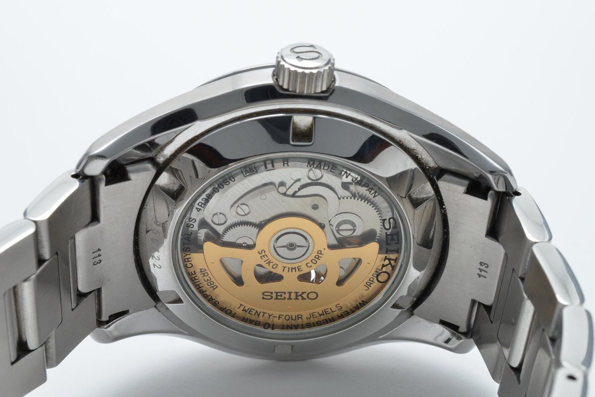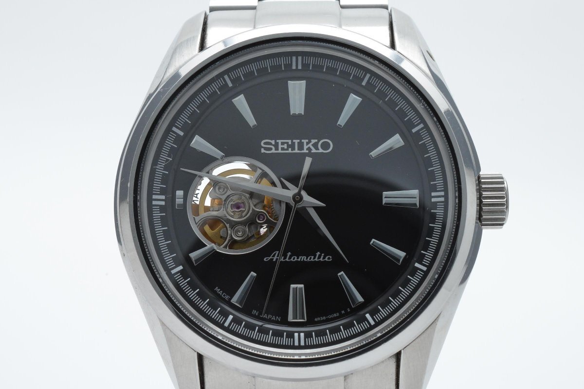 稼働品 SEIKO セイコー 4R38-00S0 円形 ラウンド 銀 シルバー Silver メンズ 腕時計 3針 黒文字盤 自動巻き 箱付き