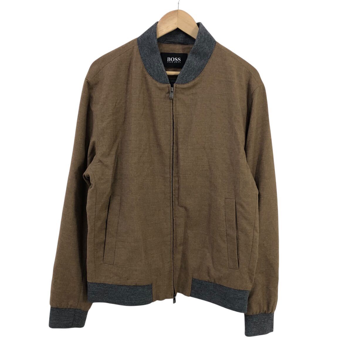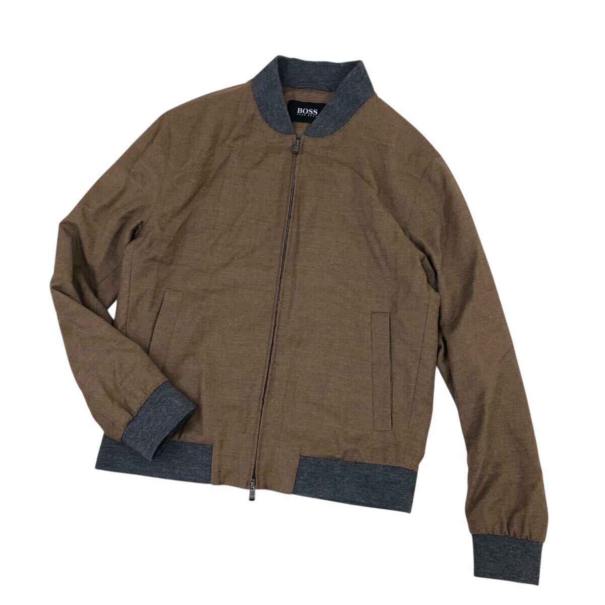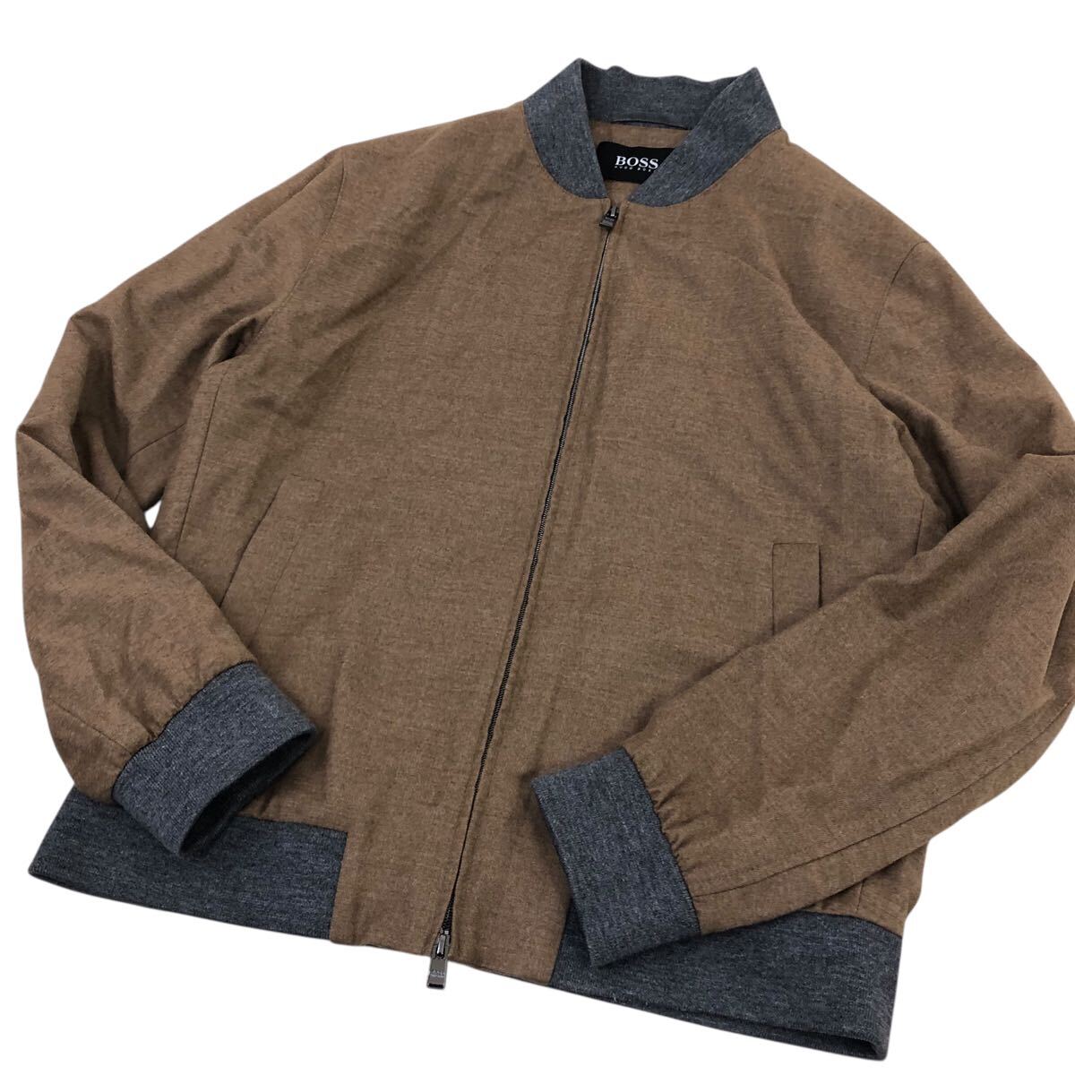 H822-46 良品 HUGO BOSS ヒューゴボス W21FW marzotto生地 ウール 長袖 ブルゾン ジャケット ジャンバー 上着 茶系 大きいサイズ メンズ 52
