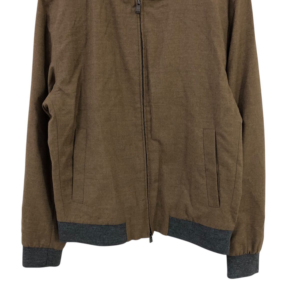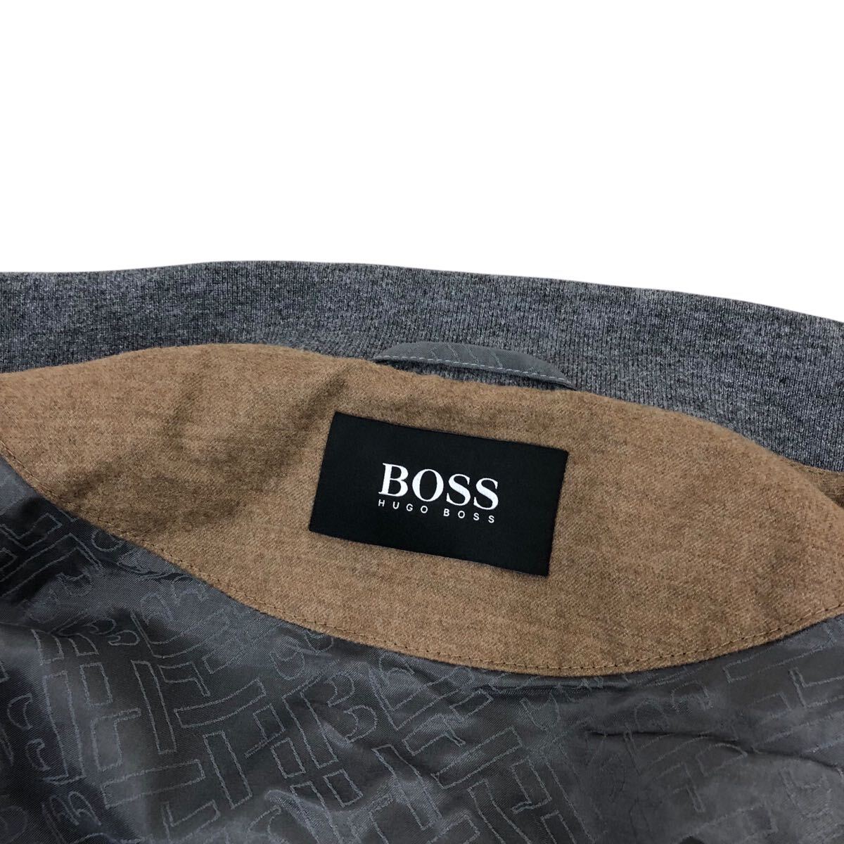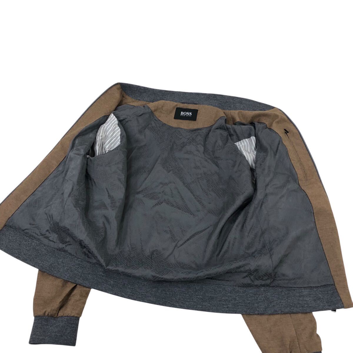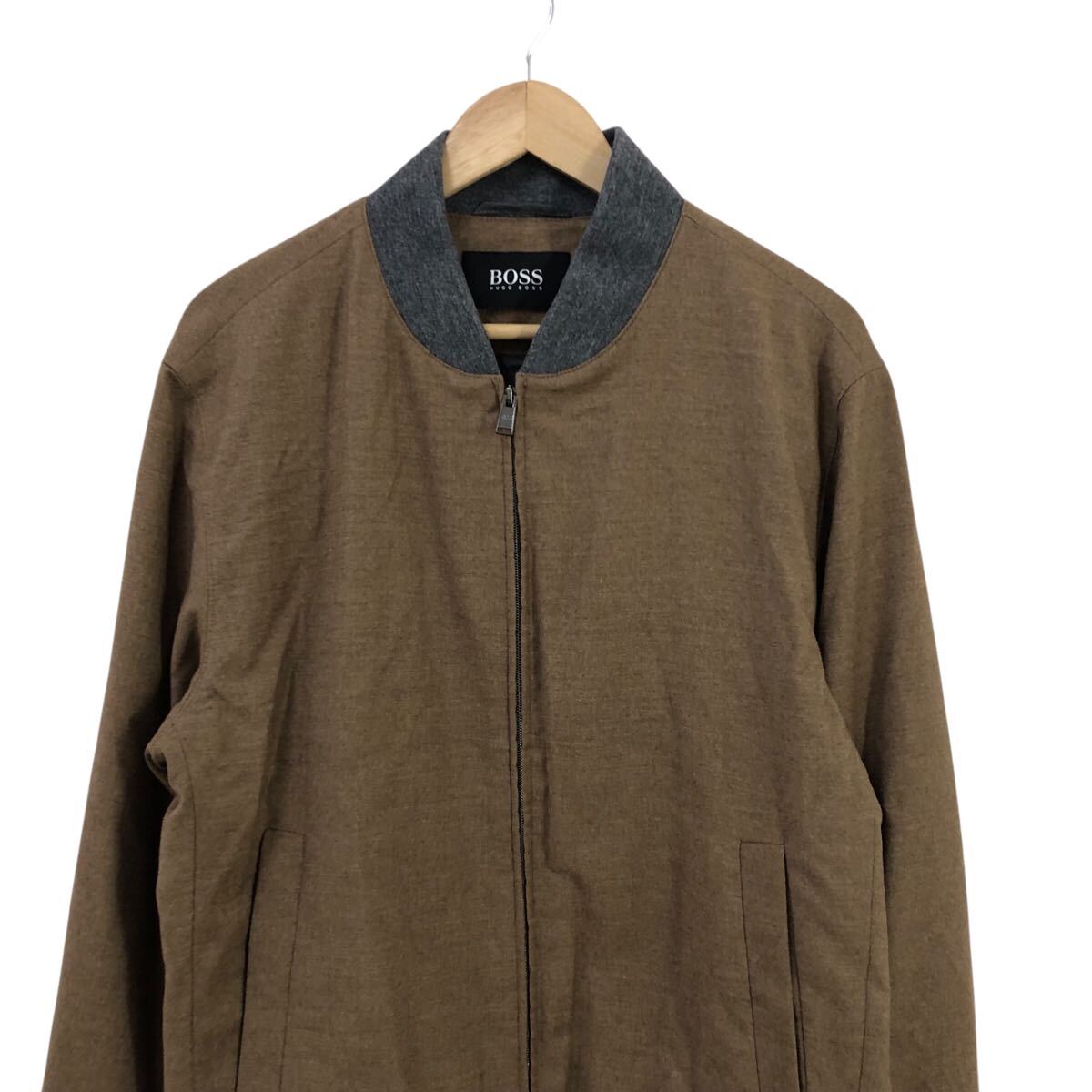 H822-46 良品 HUGO BOSS ヒューゴボス W21FW marzotto生地 ウール 長袖 ブルゾン ジャケット ジャンバー 上着 茶系 大きいサイズ メンズ 52