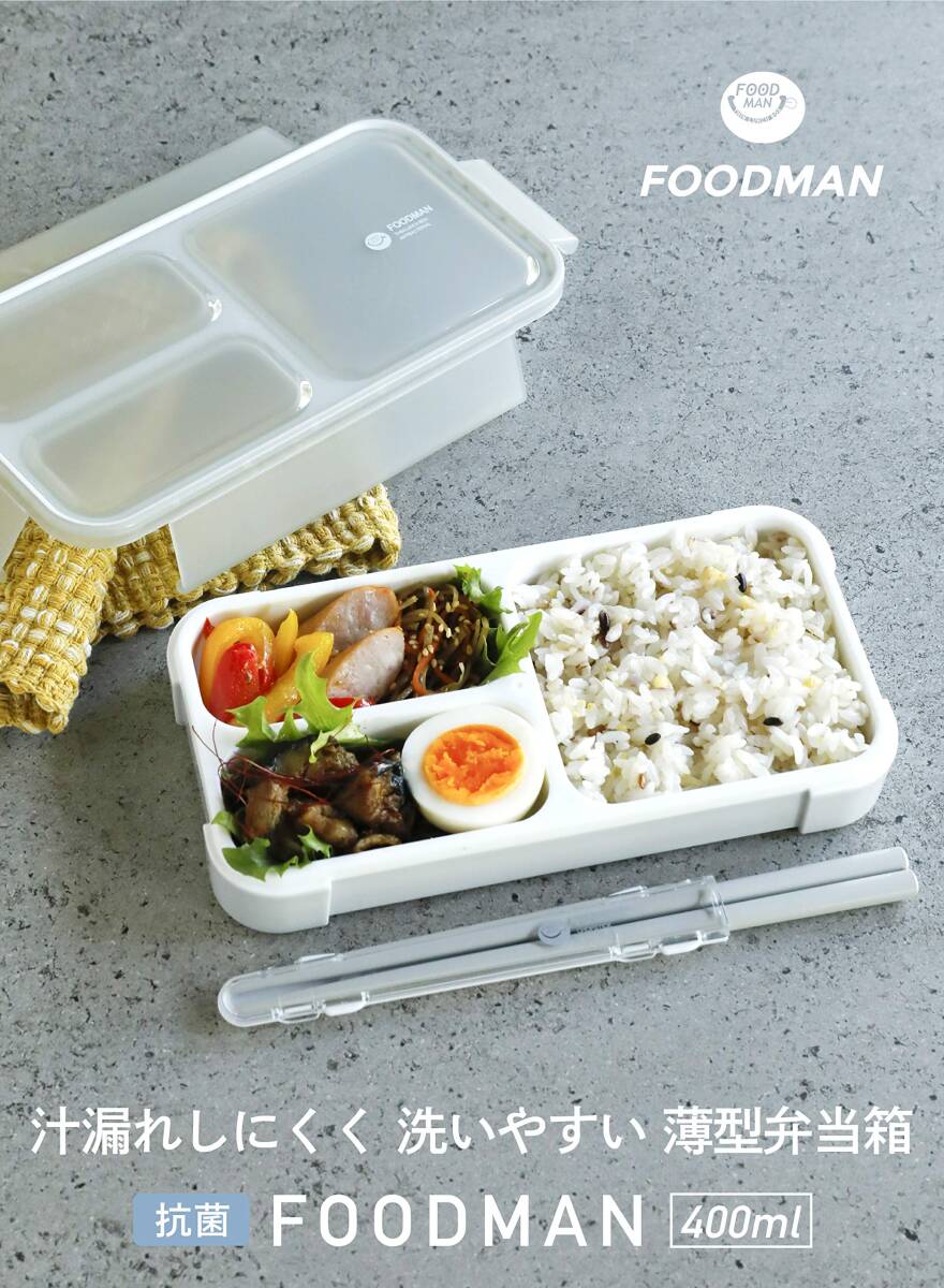 フードマン 弁当箱 立てて運べる 薄型弁当箱 400ml [ 抗菌 ] ライトグレー 汁漏れしにくい Wシーリング 4点ロックでしっかり固定 シ
