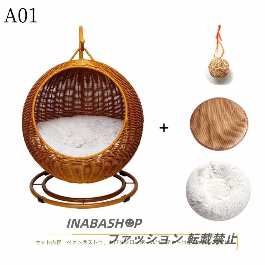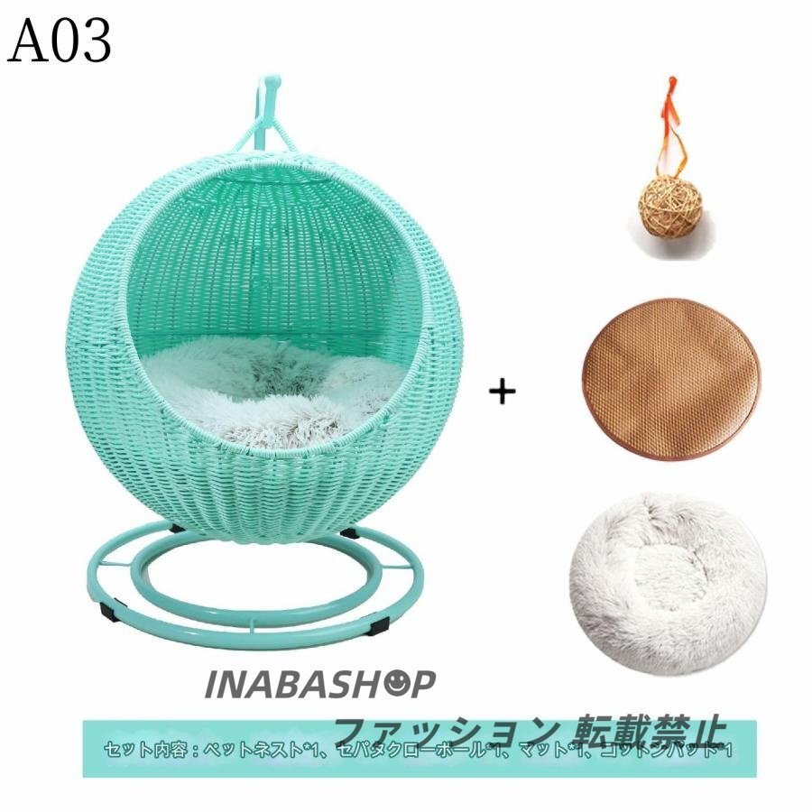 猫 ベッド ラタン 夏用 ペットベッド ドーム型 丸 猫 ペットマット ハンギングチェア コンパクト キャットハウス