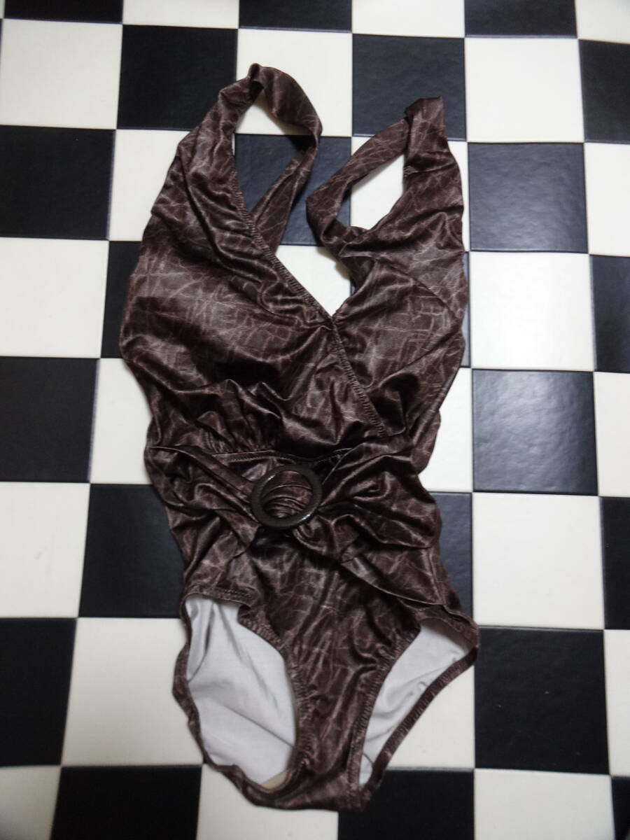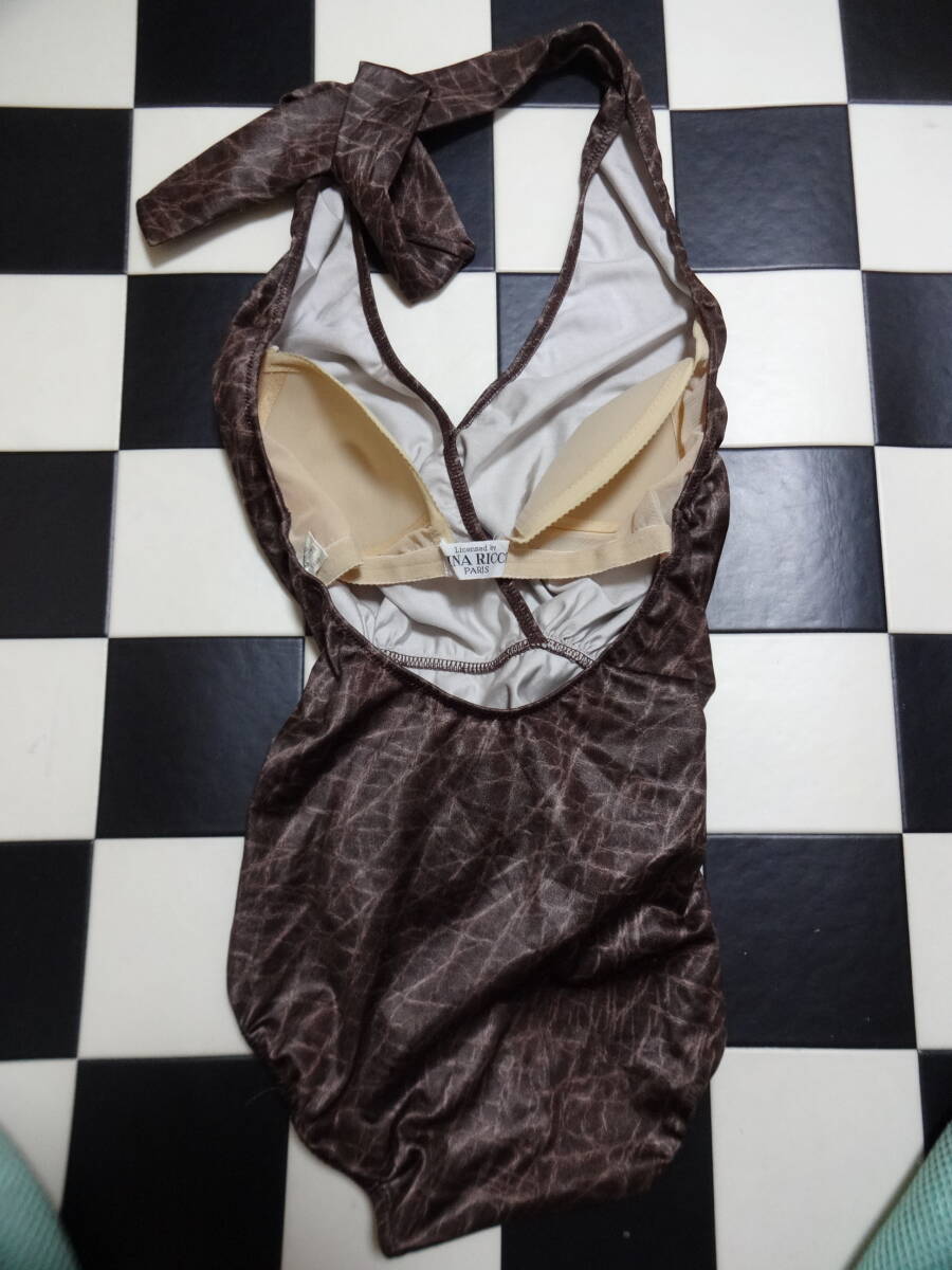 NINA RICCI 女性水着ワンピース サイズ9M D7423 光沢茶柄 ホルターネック