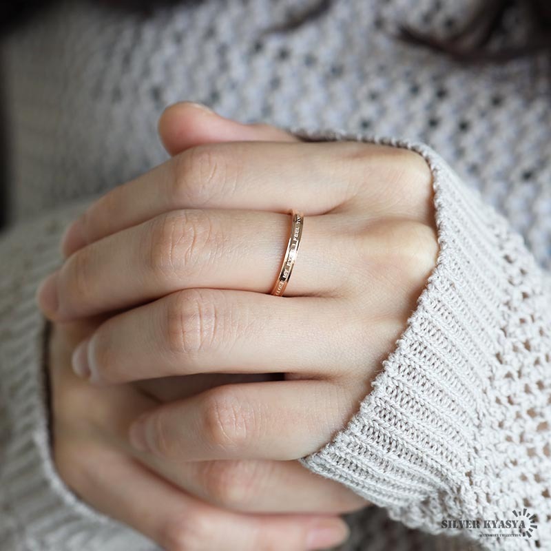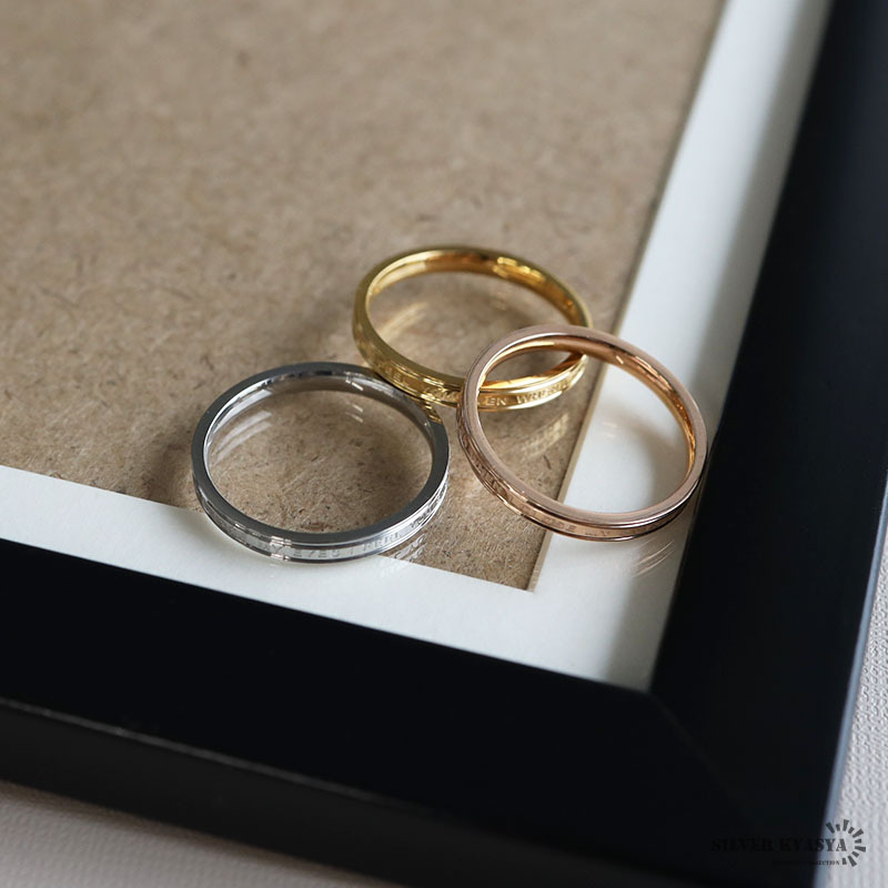 | 商品概要 | ■ITEM DESIGN シンプルなフォルムに英字が刻印されたリング。「I feel you even when I close my eyes」「目を閉じているときでも君のことを感じる」と刻印されている。オールシーズン使えるマストアイテム。 ■ステンレス素材を使用 金属部分は頑丈なことで知られるステンレス素材を採用。耐久性はもちろん耐水性も高く水場での着用も可能。金属アレルギーも出にくいとされている金属です。 |