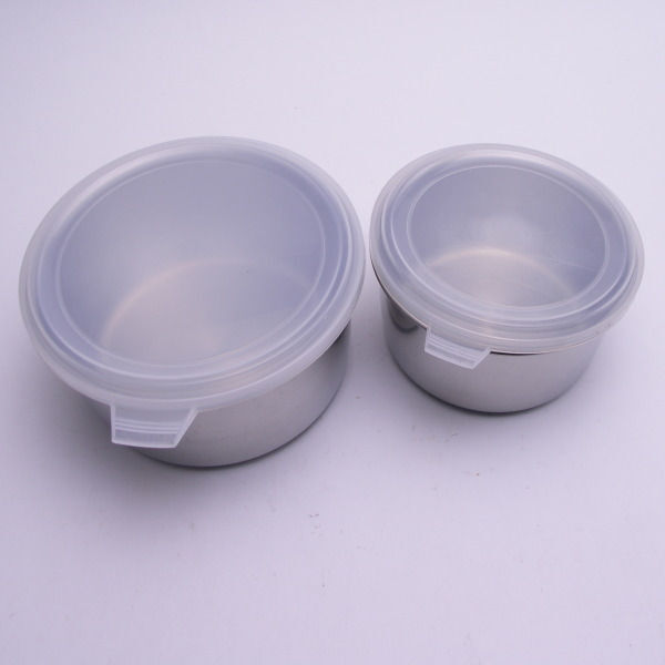 【未使用訳あり品】ステンレスボウルタッパ2点 安価タイプ 丸フリージング