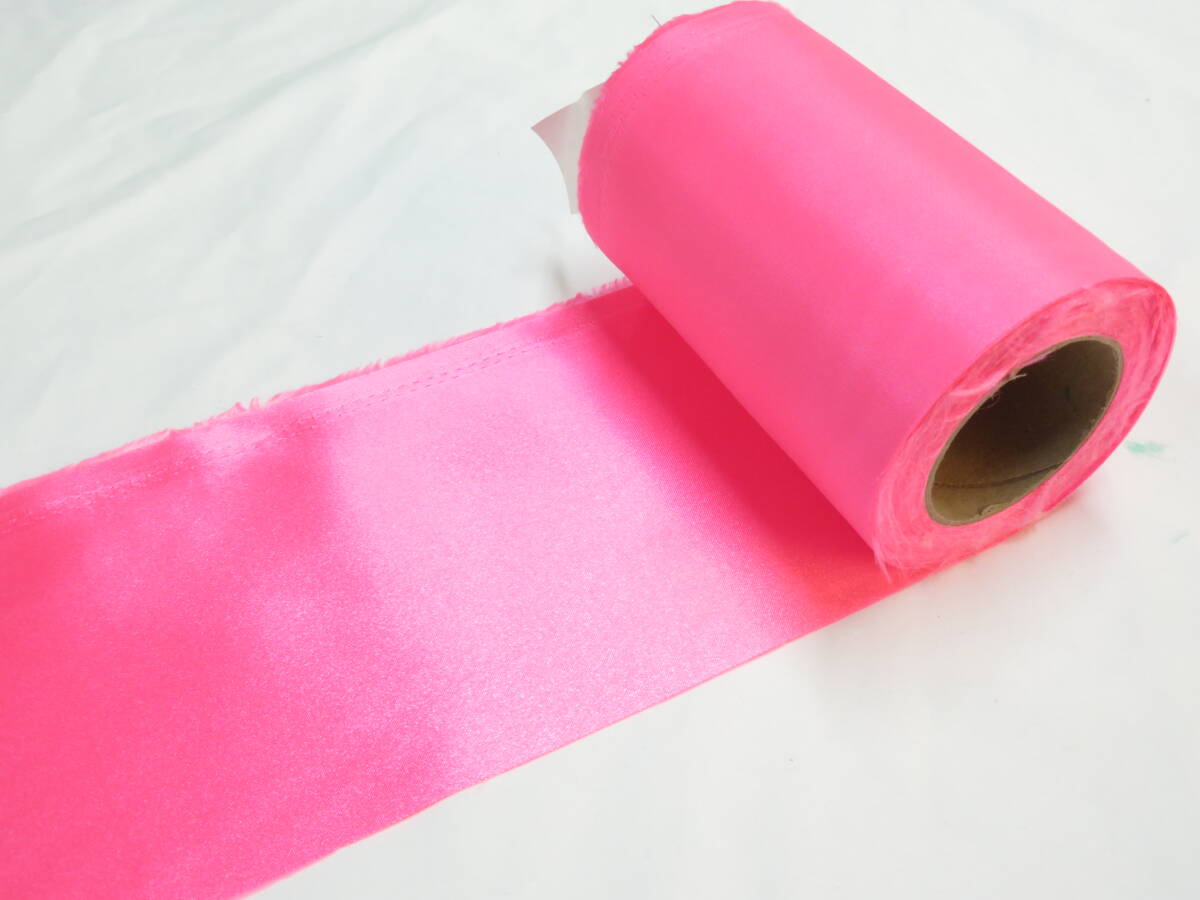 はぎれロールリボン (ST-06-2) サテン 無地 蛍光 ピンク 約11㎝幅×約20m 布 生地 ワンポイント ドール 人形 服 ドレス 安い ハギレロール