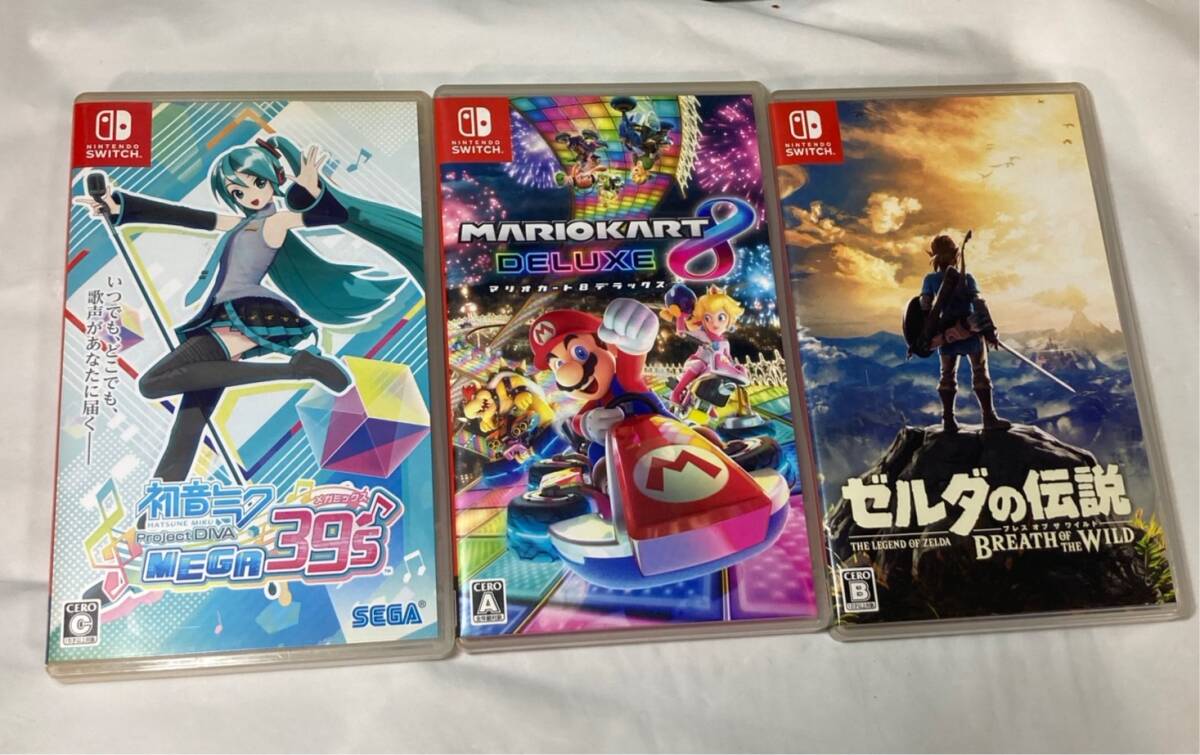 | Nintendo Switch 3本セット ゼルダの伝説 ブレス オブ ザ ワイルド +マリオカート8 デラックス +初音ミク Project DIVA MEGA39's | |